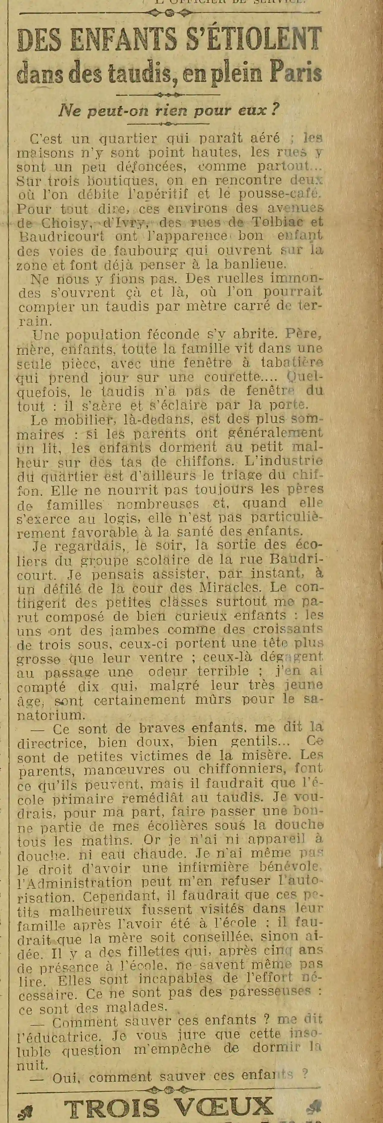 Toujours page cinq - Des enfants s'étiolent en plein Paris , ne peut-on rien pour eux |