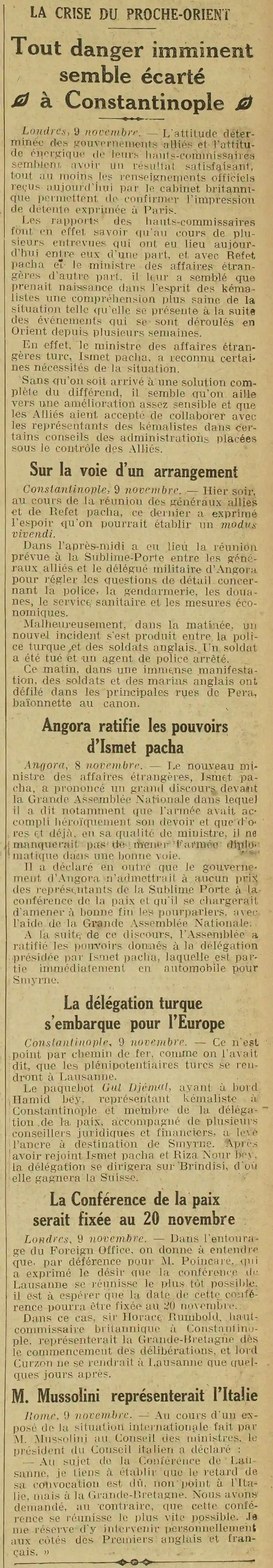 À la page trois - Détente entre les alliés et le gouvernement d'Angora ? |