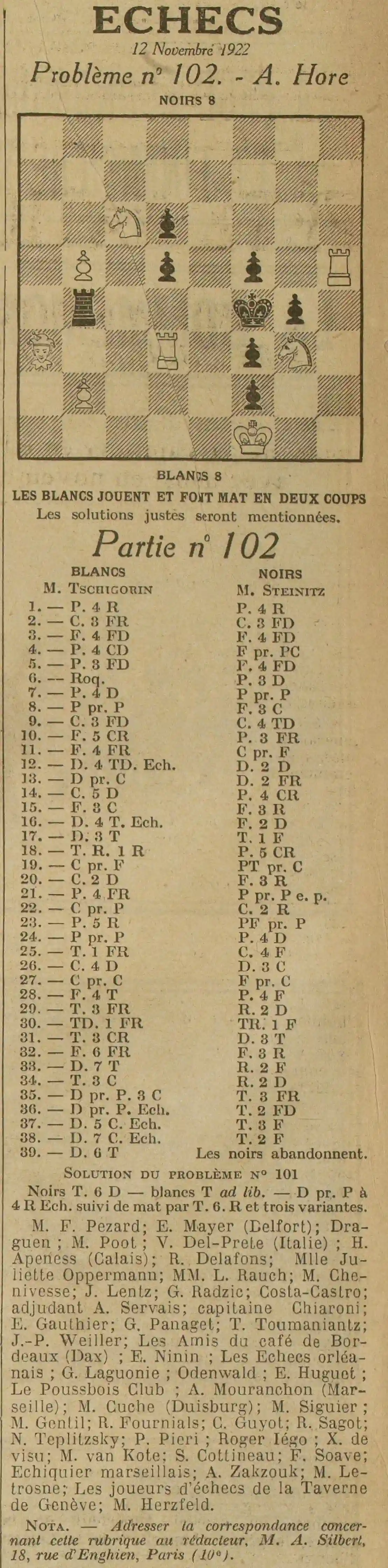 partie déchecs 2Et à la page deux - Les échecs, la partie numéro 102partie déchecs 2 et la solution de la semaine dernière de la partie numéro 101
