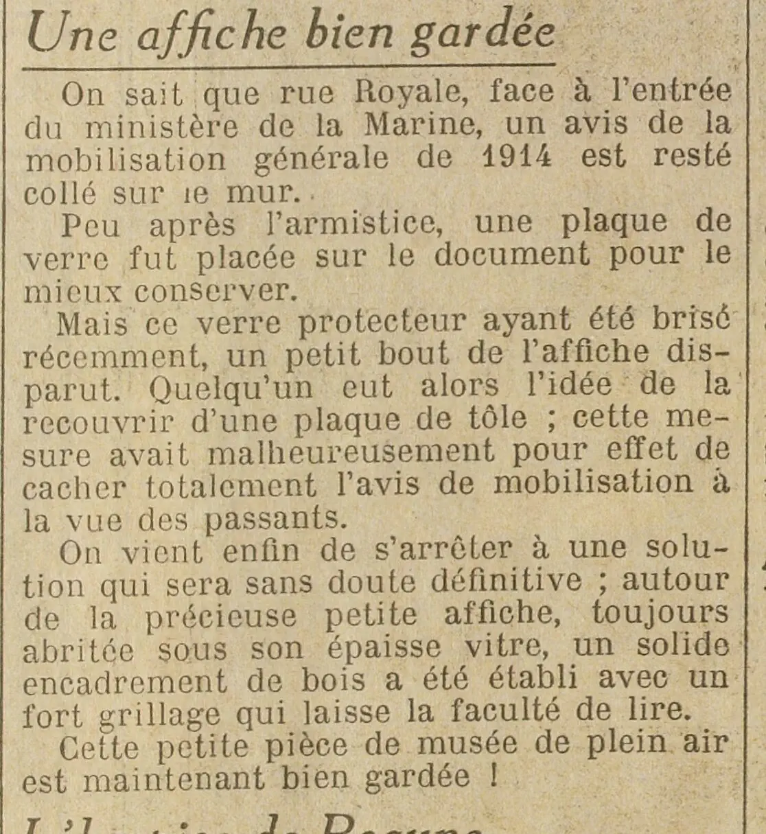 Et sur la même page - Une affiche bien gardéeUne affiche bien gardée, rue Royale à Paris, un témoin de l'histoire qui existe toujours, rue Royale à Paris, un témoin de l'histoire qui existe toujours
