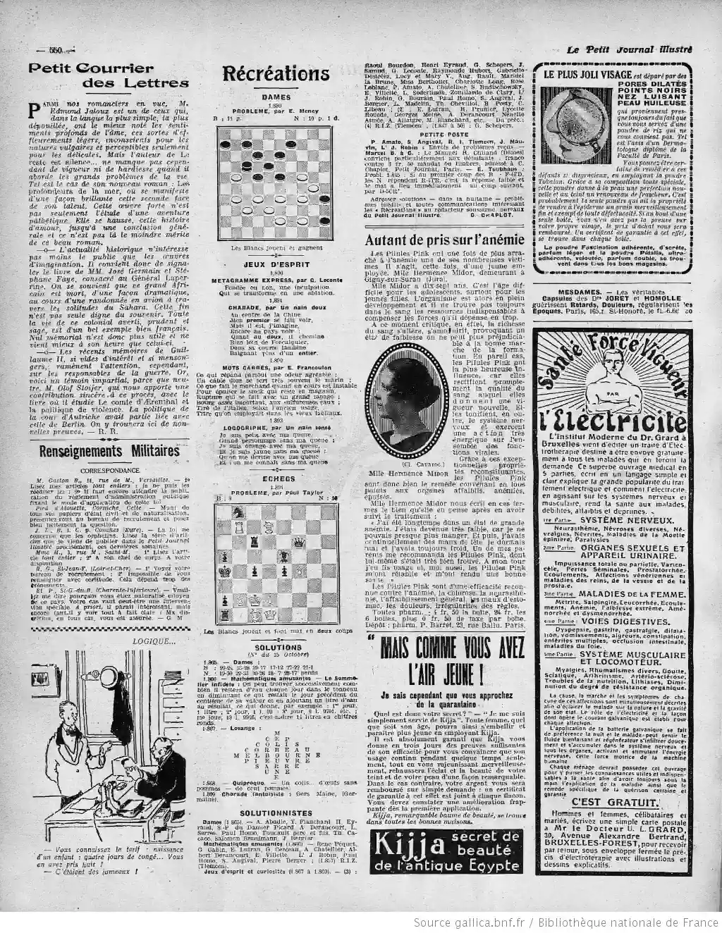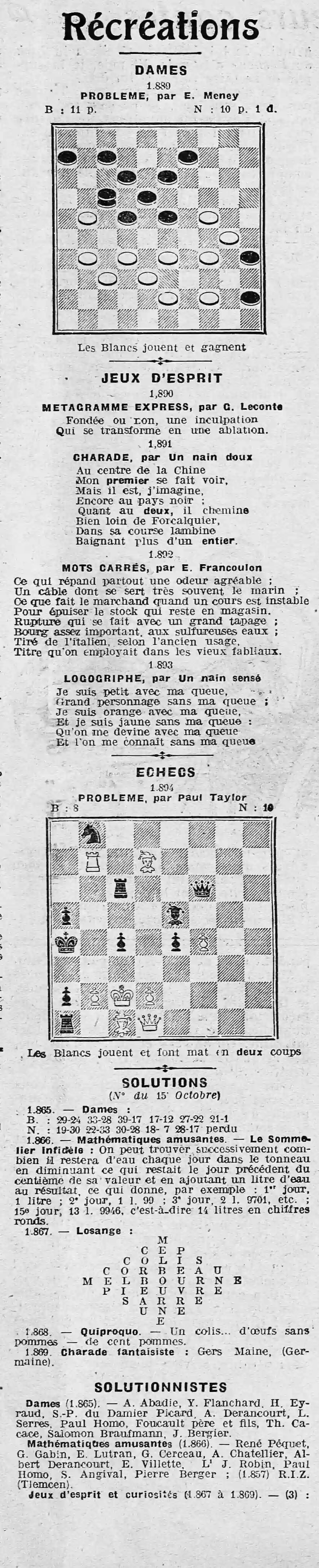 Et à la page dix - Les récréationsrécréations 10 avecs les échecs, dames, metagramme express, charade, mots croisés, logogriphe et les solutions du 15 octobre