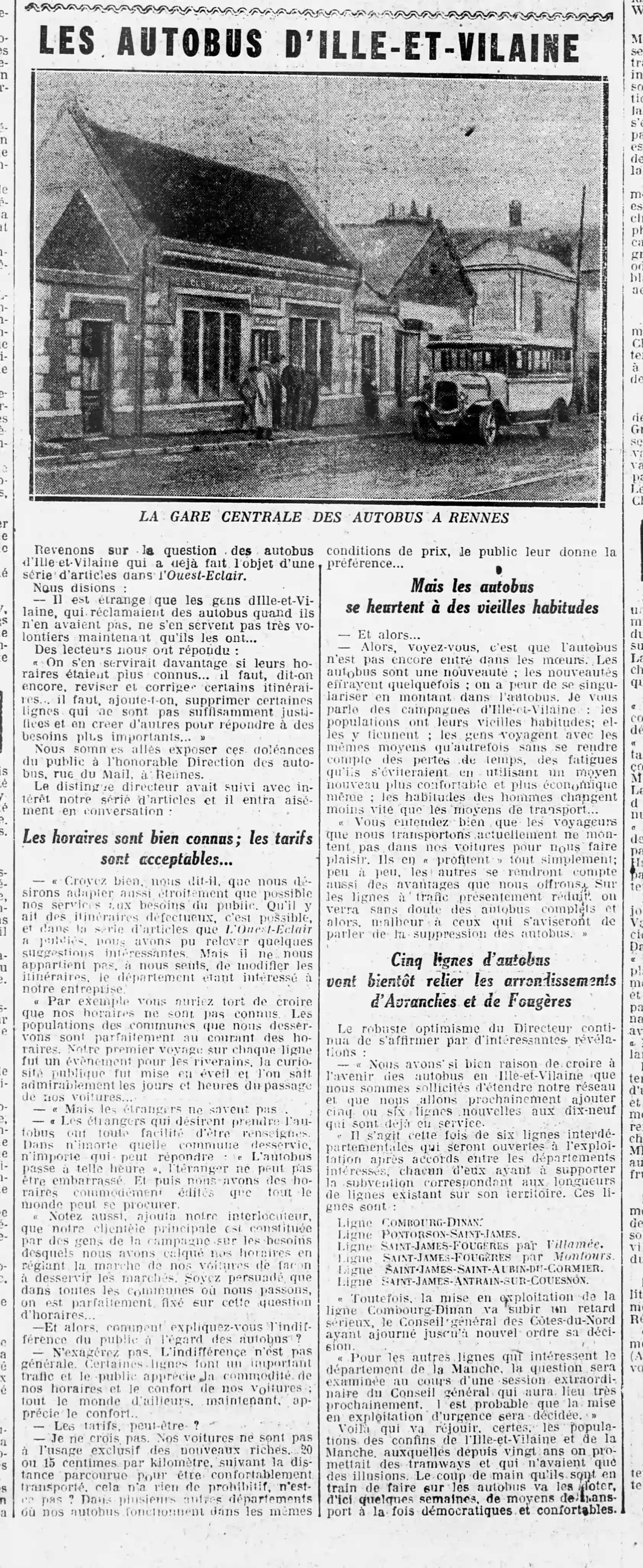 Et à la page cinq - Les autobus en Ille-et-VilaineLes autobus en Ille-et-Vilaine avec en photo la gare centrale d'autobus à Rennes et le point sur la situation et un espoir de doter la population d'un transport démocratique et confortable avec en photo la gare centrale d'autobus à Rennes et le point sur la situation et un espoir de doter la population d'un transport démocratique et confortable