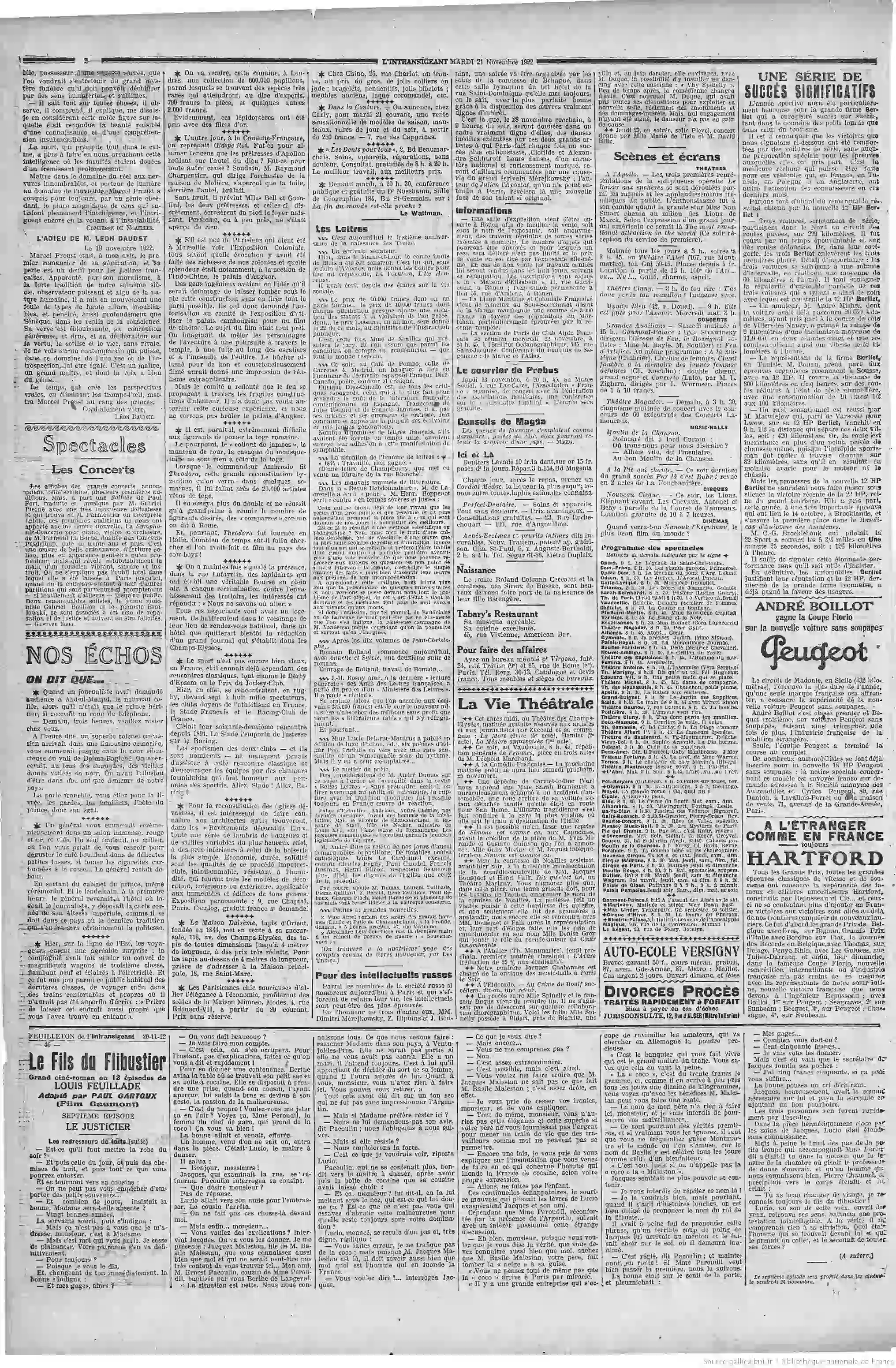 Le Grand Écho du Nord - Une petite brèvemort de Marcel Proust, qui sera longuement commentée dans les prochains jours : la mort de Monsieur Marcel Proust