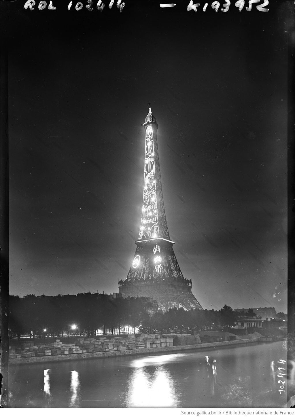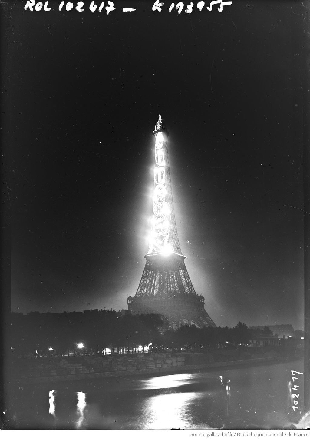At nightfall, thousands of curious onlookers, flocking from all over Paris, gathered last night at the foot of the Eiffel Tower to be the first spectators of the predicted blaze. They firmly held the sidewalks and even part of the roadway along the Quai d'Orsay and the nearby avenues. When, at precisely 10:00 a.m., a red flame burst forth from the top of the gigantic wall, soon followed by the flashing of numerous brilliant stars and the appearance of tongues of flame licking the iron frame, lit by day, a huge cry of admiration erupted from the crowd. Whistles had earlier shown the impatience of some, they had not altered the beautiful indifference of the tower, but it suddenly seemed that, delayed, it rose more proudly towards the clouds that clung to its tip. Late in the night, the name of the popular manufacturer of the small 5 HP could be read on the night screen, from all the districts of Paris and the most distant suburbs.
