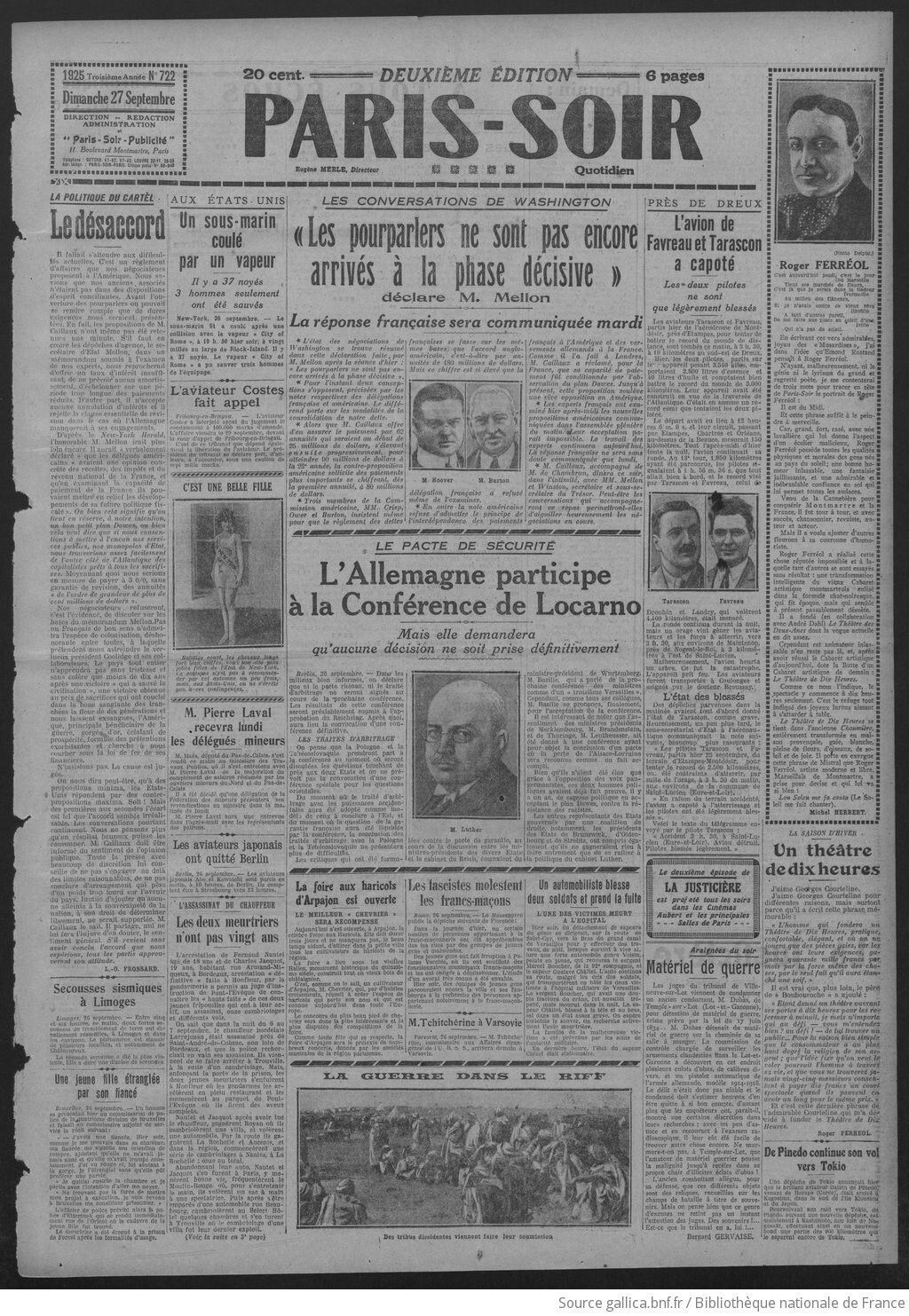 D'après le New-York Herald, l'honorable M. Mellon irait plus loin encore. Il aurait «verbalement déclaré» que les délégués américains avaient une opinion concrète des recettes, des impôts et du revenu national de la France, et qu'en examinant la capacité de paiement de la France ils pouvaient mettre en relief les développements de sa future politique fiscale. Ou bien cela signifie qu'on tient en réserve, à notre intention, un bon petit plan Dawes, ou bien cela veut dire que si nous consentions à mettre à l'encan nos services publics, nos monopoles d'Etat, nous trouverions assez facilement de l'autre côté de l'Atlantique des capitalistes prêts à tous les sacrifices. Moyennant quoi nous serions en mesure de payer à 3 0/0, sans garantie de revision, des annuités «de l'ordre de grandeur de plus de cent millions de dollars».