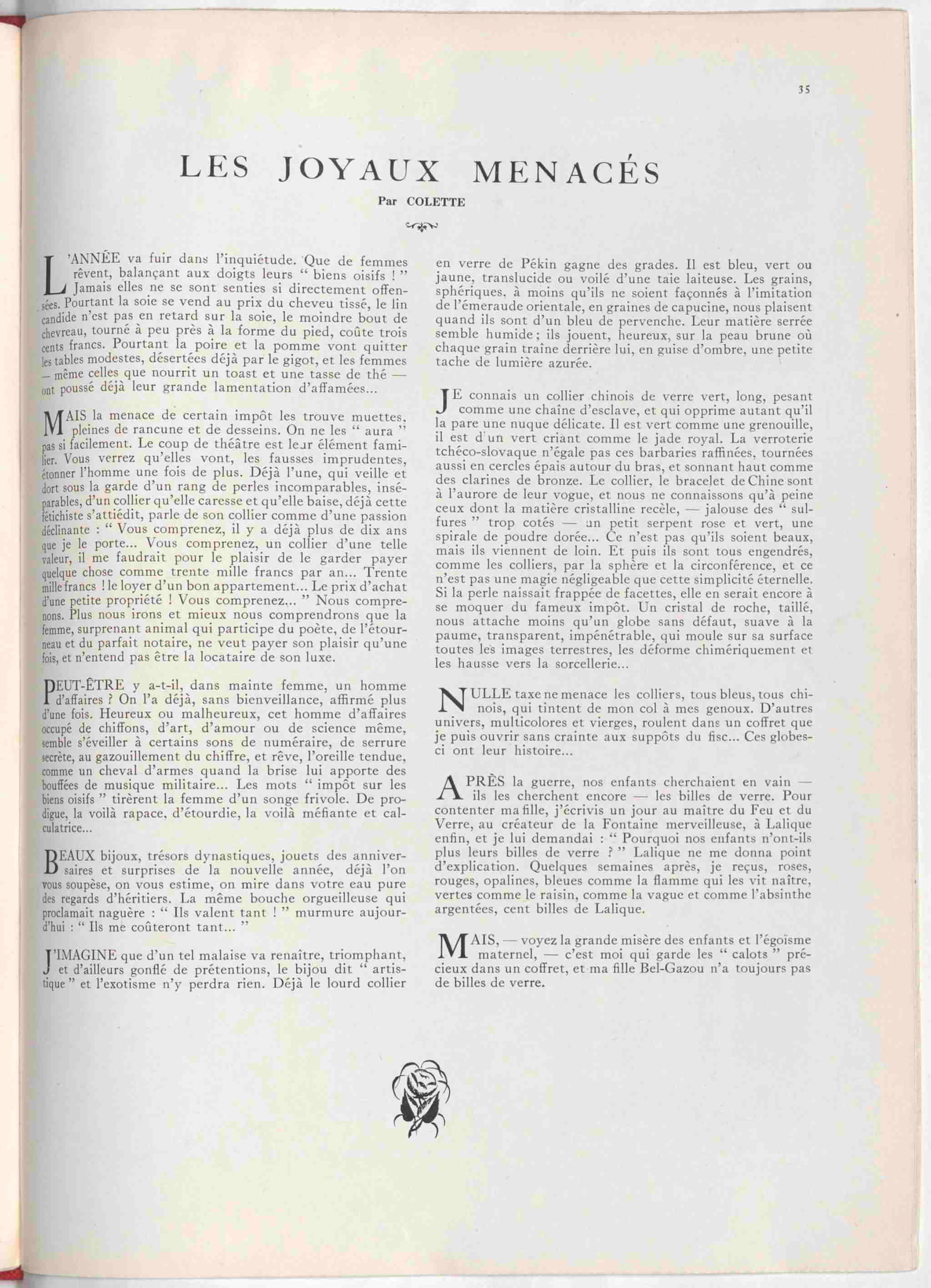 La chronique de Colette, ce mois-ci " les Joyaux menacés " - 20 décembre 1925