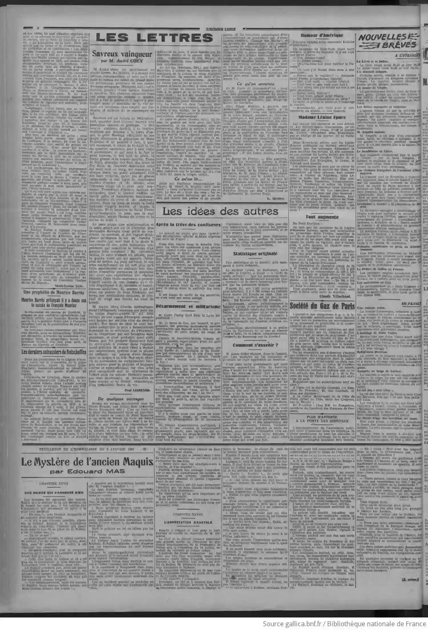 | L'Œuvre 09 janvier 1924 |