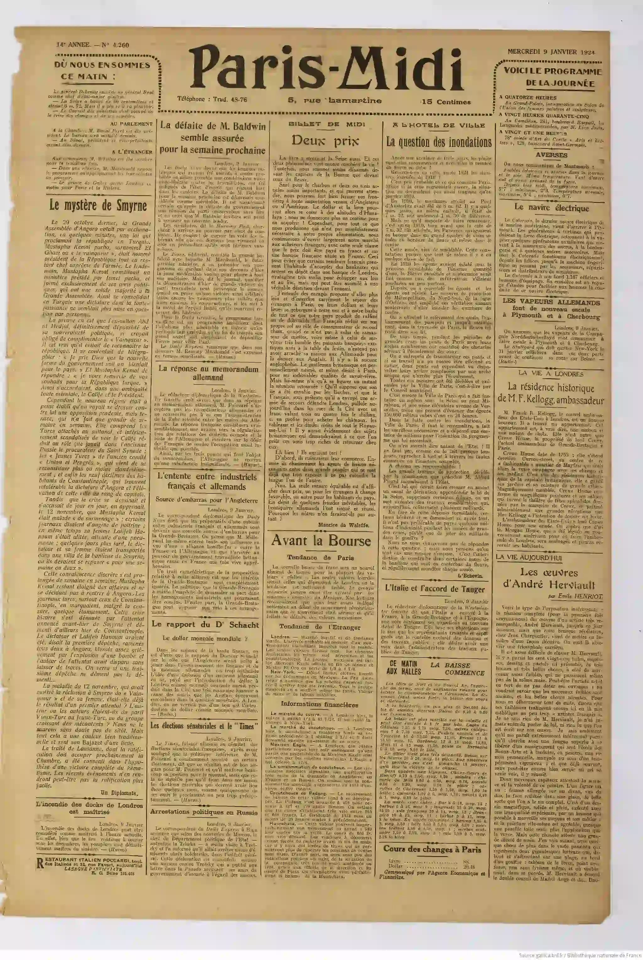 | Paris-Midi 09 janvier 1924 |