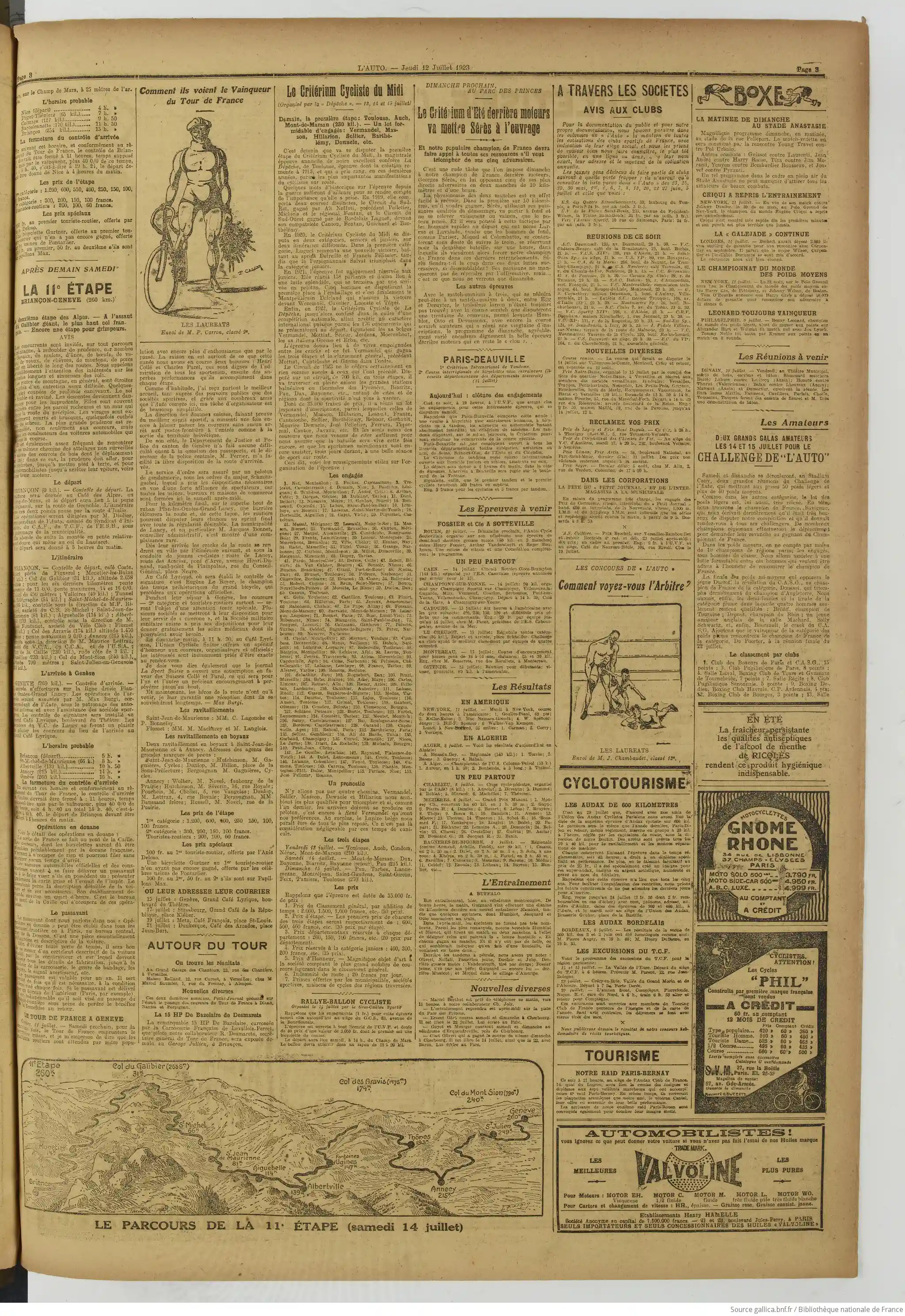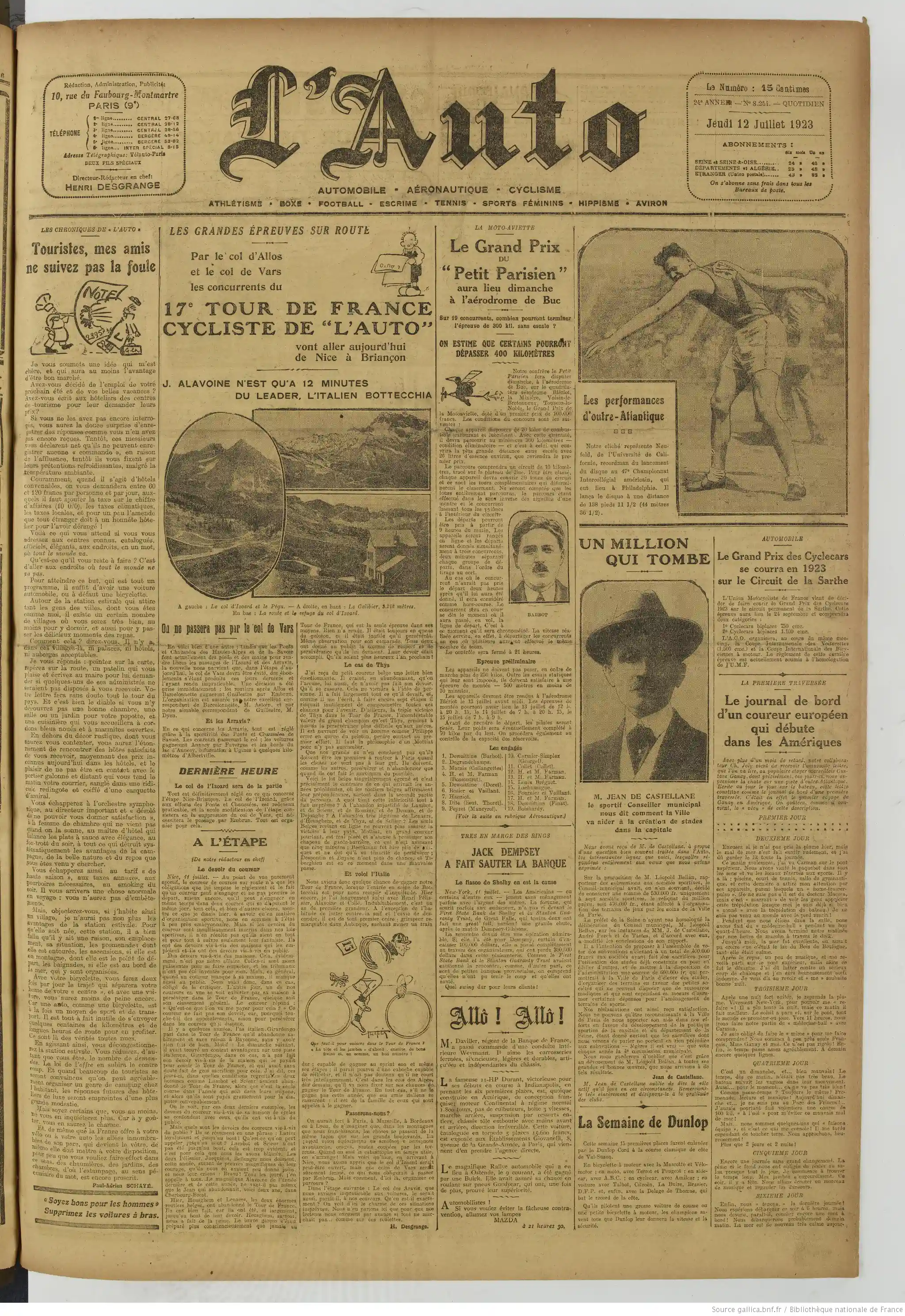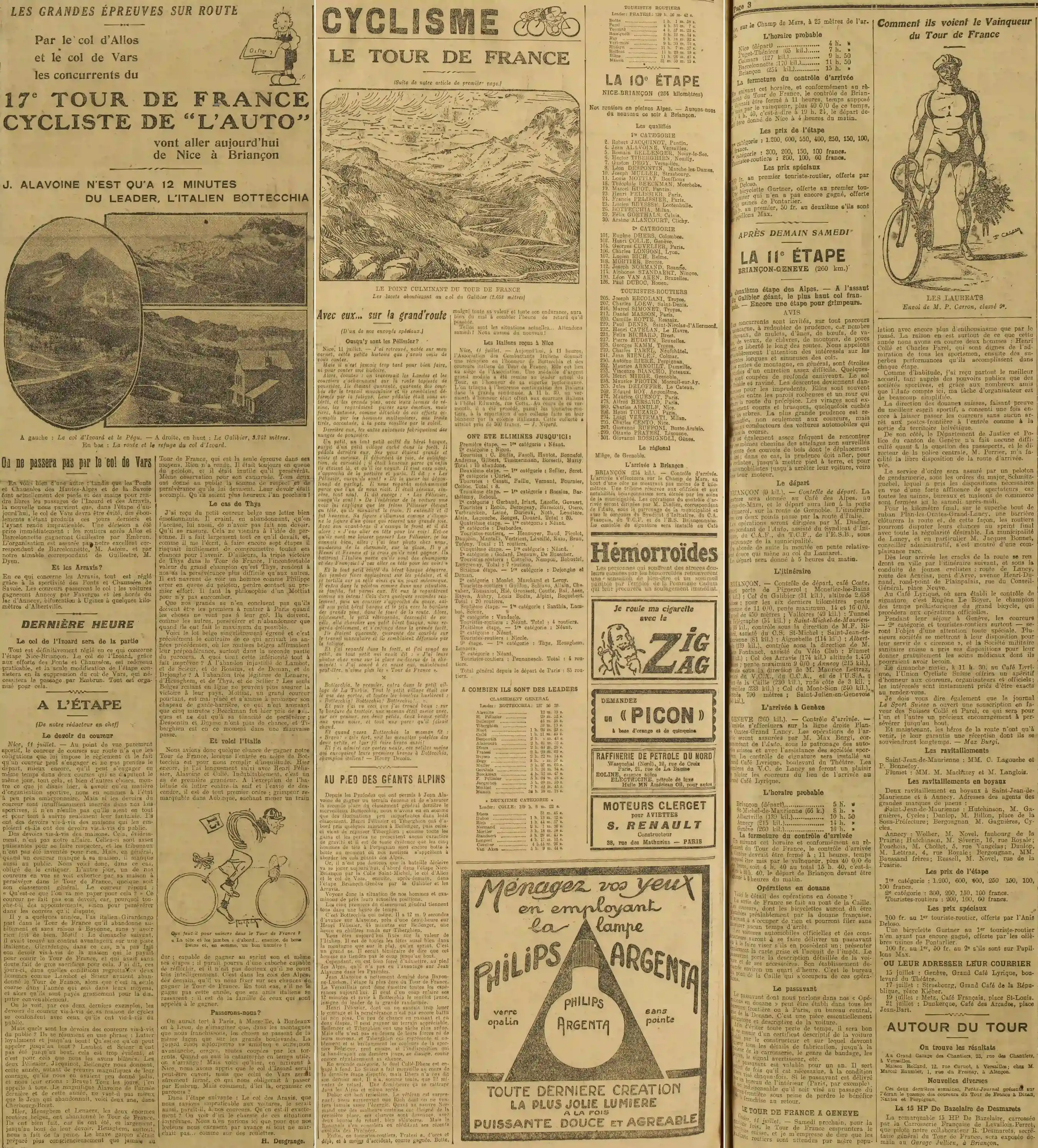 Pages une deux et trois - cyclismecyclisme : dans le 17ème Tour de France, Bottechia est leader, Alavoine second à 12 minutes. le Grand-Prix Motoaviette... Jack Dempsey...   le sport automobile... la boxe... : dans le 17ème Tour de France, Bottechia est leader, Alavoine second à 12 minutes. le Grand-Prix Motoaviette... Jack Dempsey...   le sport automobile... la boxe...