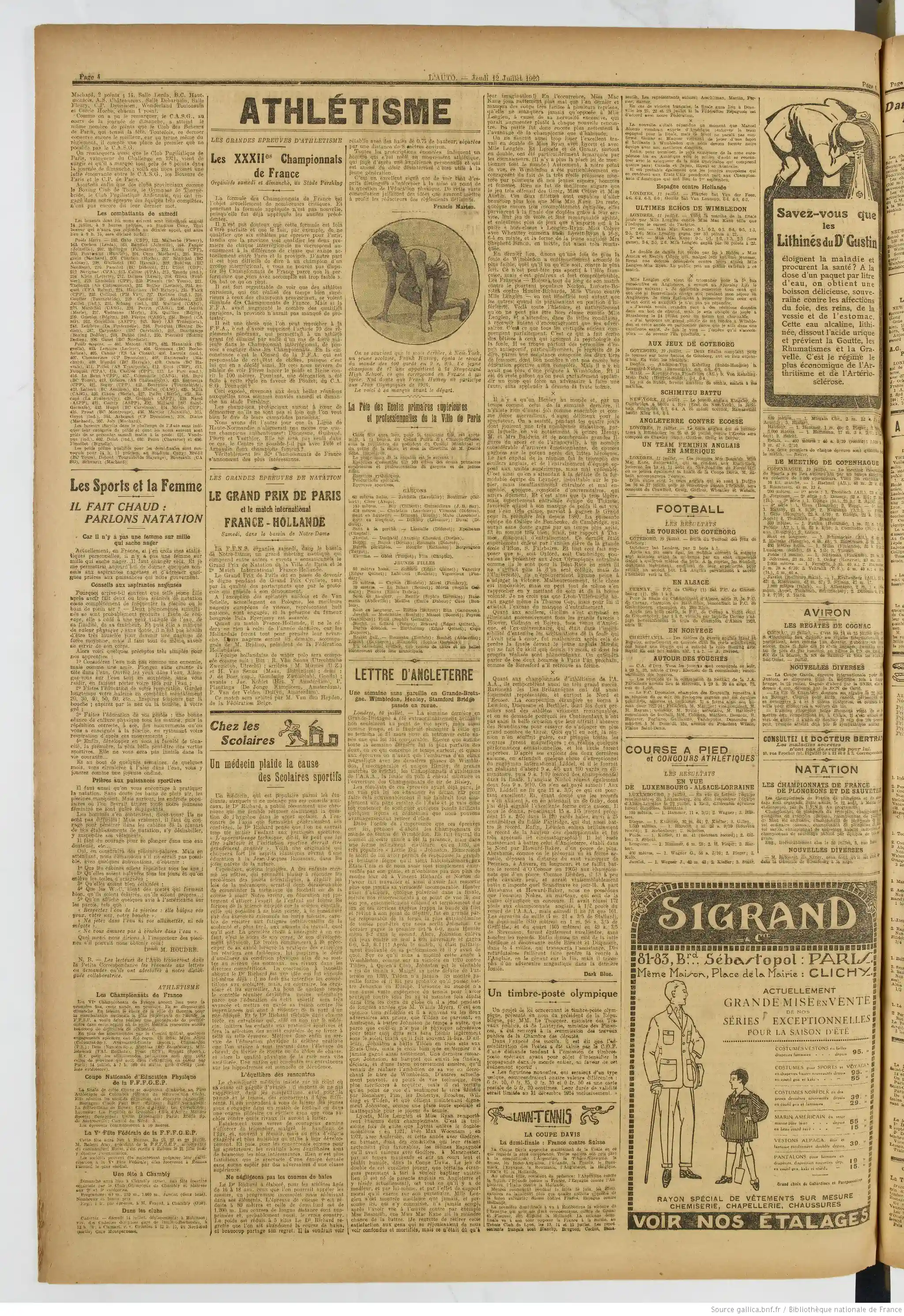 Pages quatre cinq et six - en vrac, athlétisme... natation...les petites annonces et la pub...