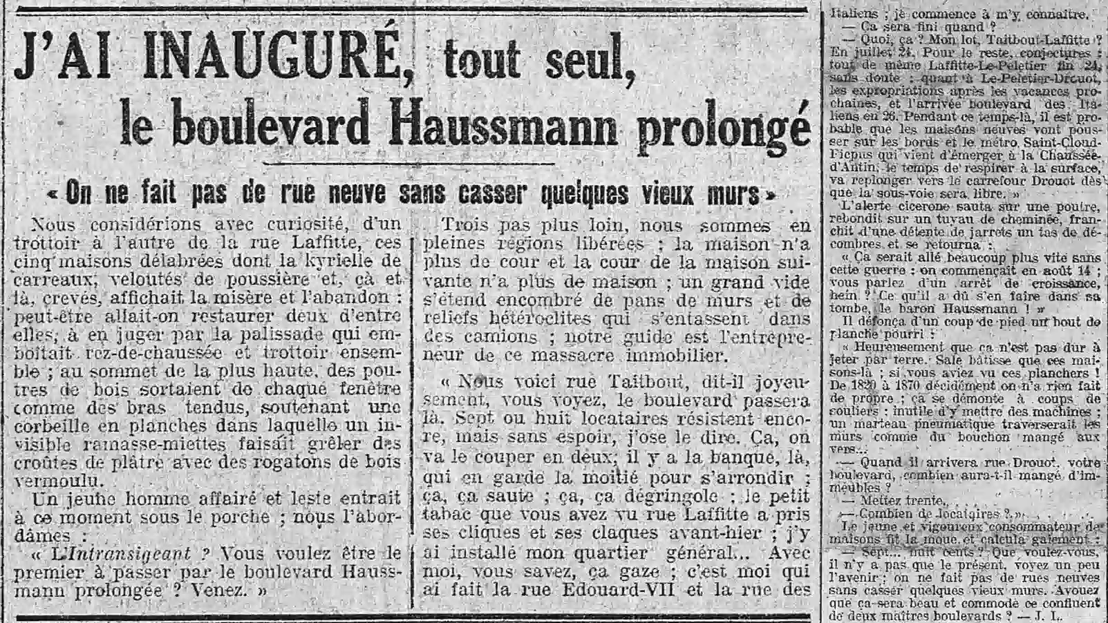 Page une - boulevard Haussmann , on ne fait pas de rue neuve sans casser quelques murs |