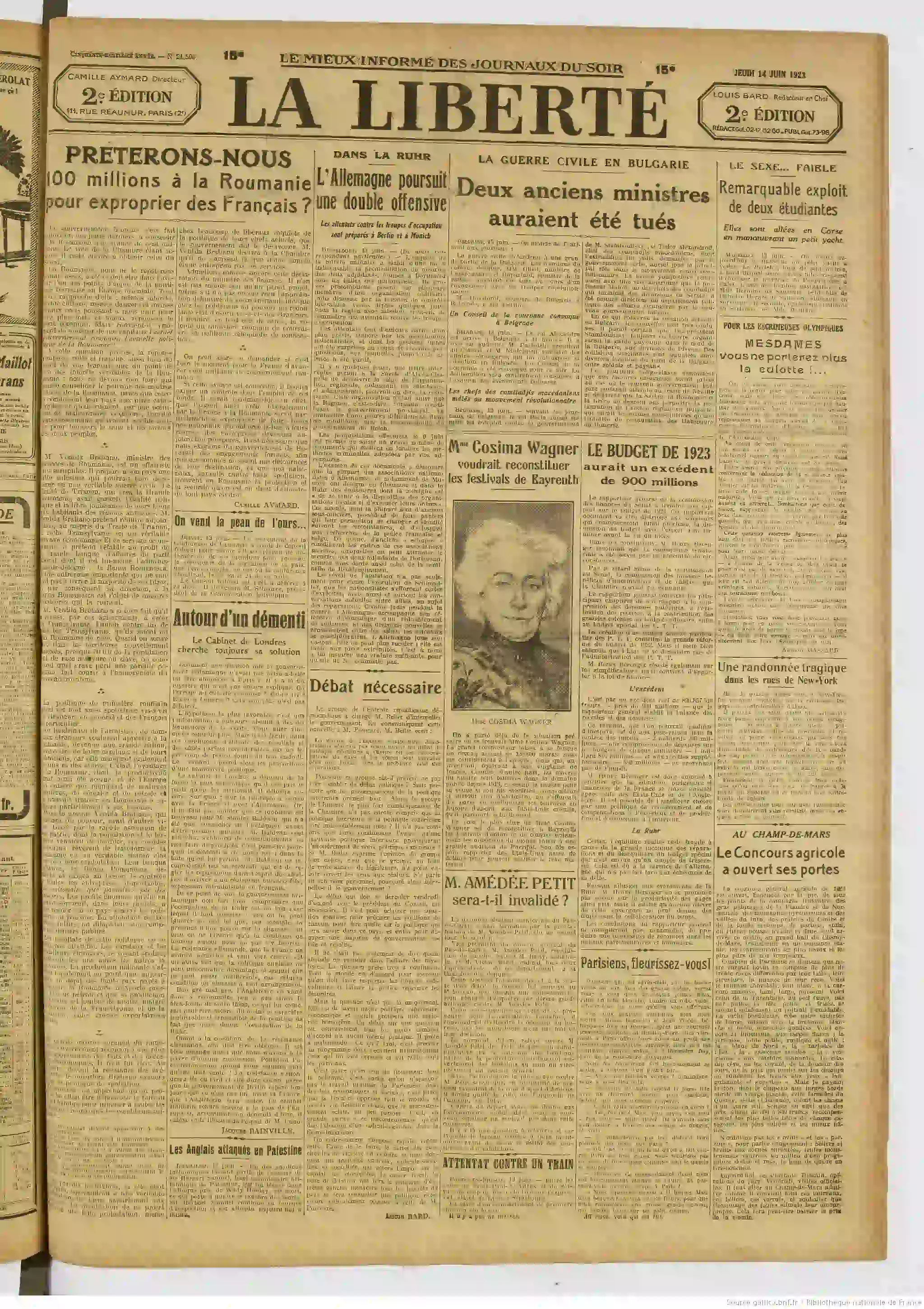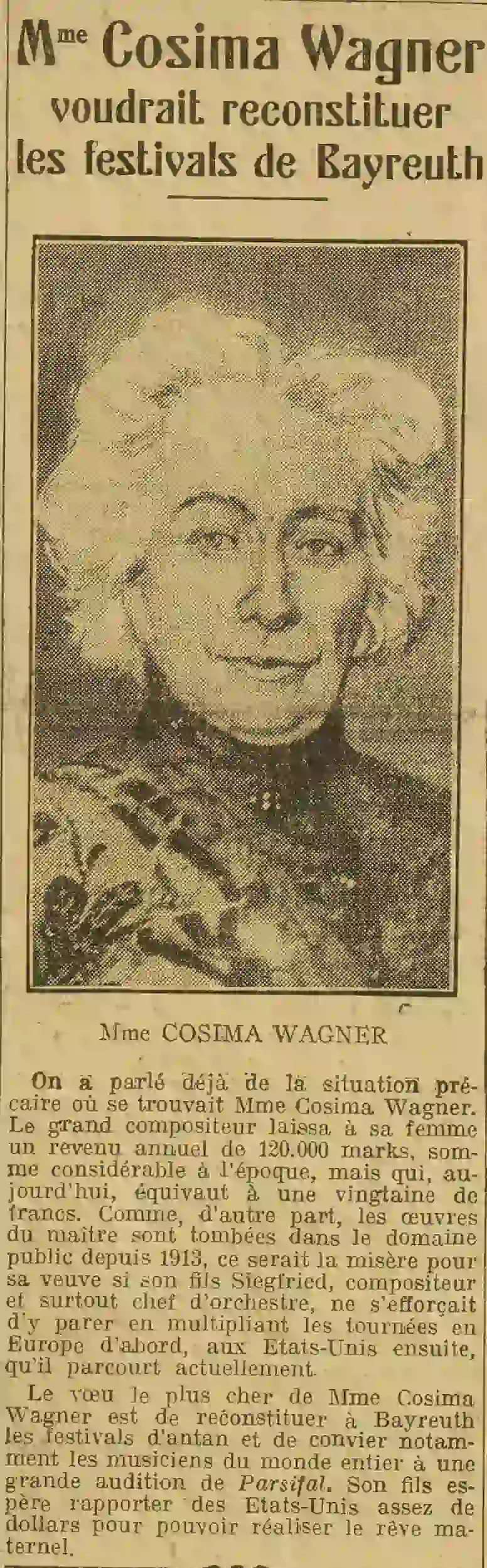 - Cosima Wagner veut faire revivre le festival de Bayreuth |