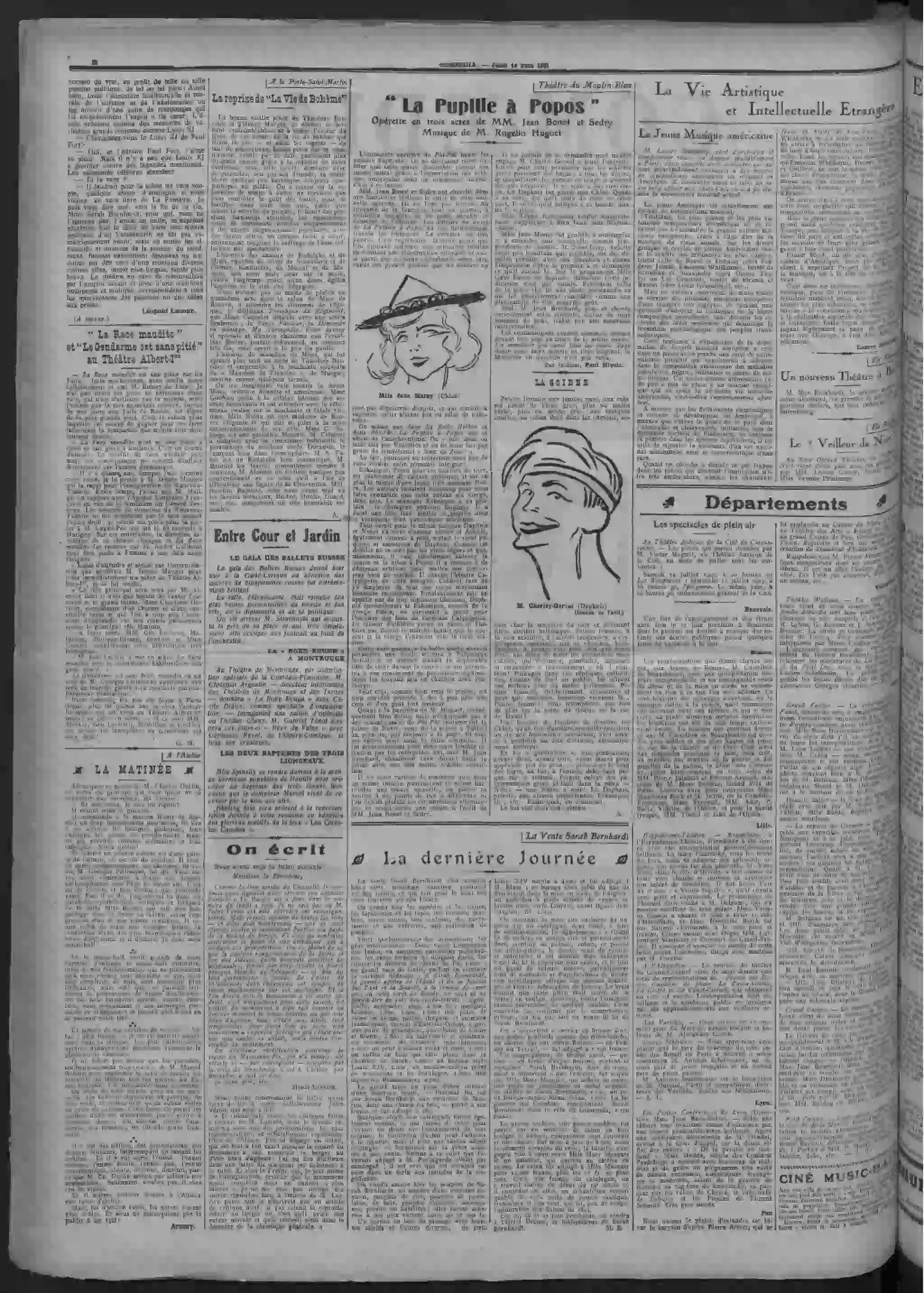 Page une - l'avenir du théâtre : une interview de Sacha Guitry qui n'est pas assidu des salles de spectacle. Et une superbe coquille |