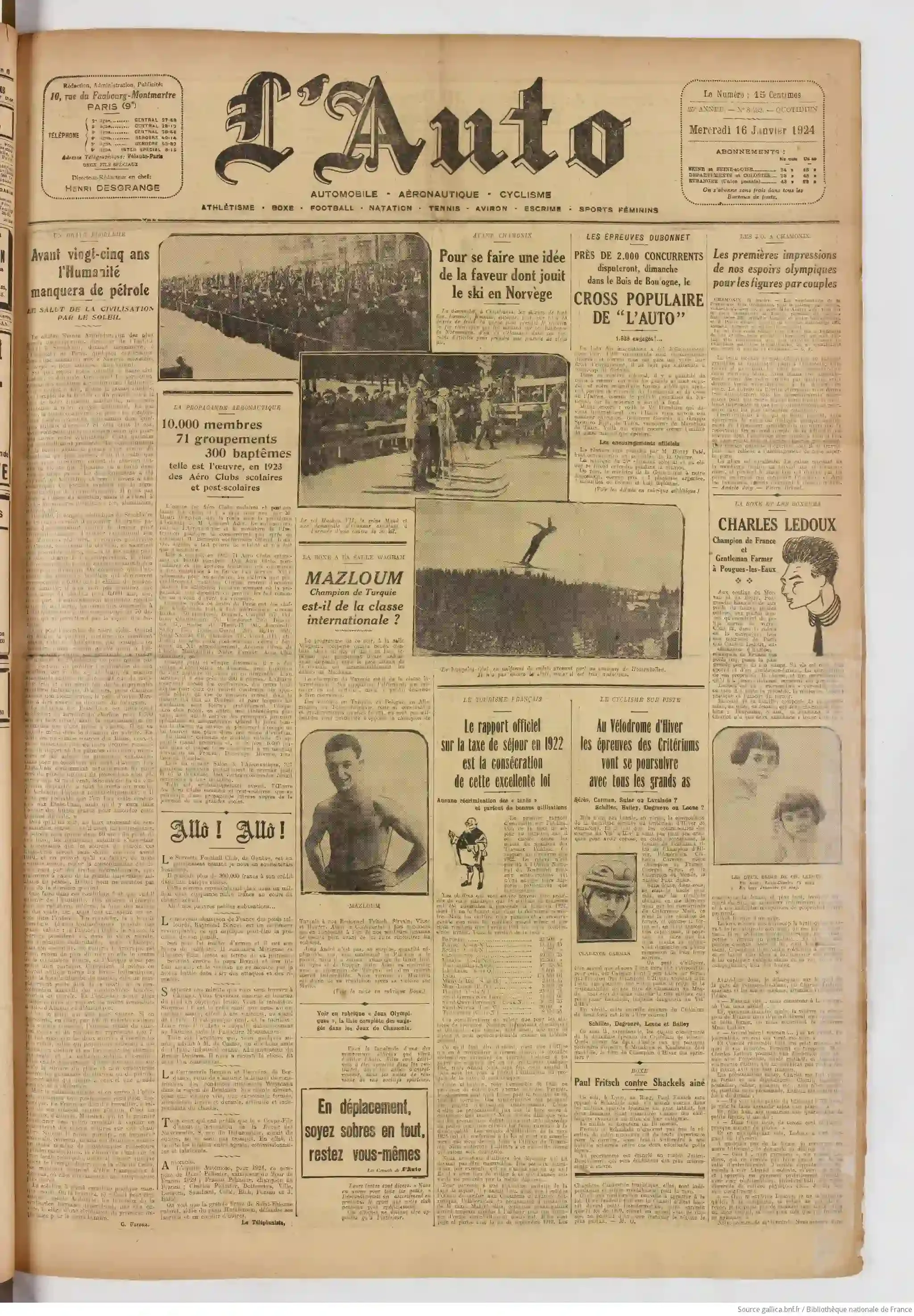 | L'Oeuvre 16 janvier 1924 |