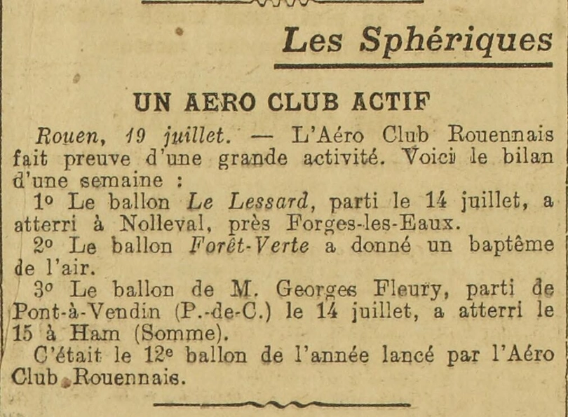 - les sphériquesles sphériques, ce sont les ballons et l'aéro-club actif est celui de Rouen, ce sont les ballons et l'aéro-club actif est celui de Rouen