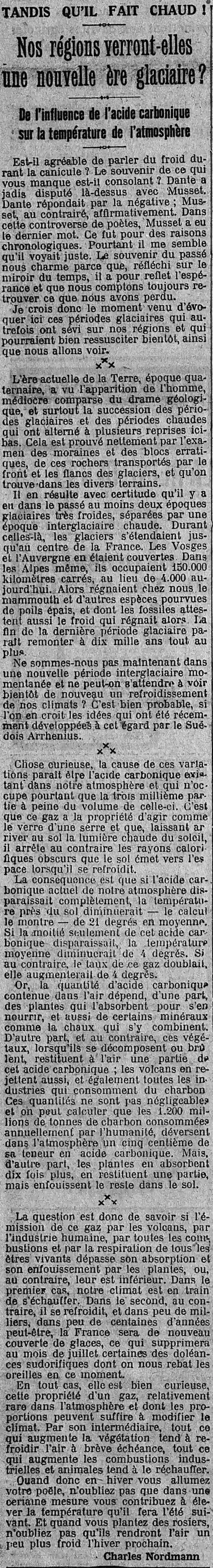Page une - de l'influence de l'acideanglais surditéfrançais surdité carbonique sur la température de l'atmosphère. Cela fait à priori cent ans qu'industriels et gouvernants savent, et ça continue...