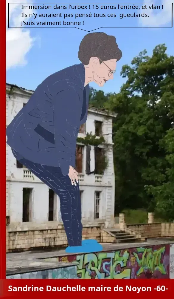 Restons dans ce sympathique département de l'Oise, avec une séance braderie... à Noyon Mais ouf ! : Vente du patrimoine communal : le grand n’importe quoi ! «Nous avons bien fait réaliser des estimations publiques de cette église et de l’ensemble immobilier du 33 rue de Paris, mais pas dans le but de les vendre. On a rectifié, car il s’agit de faire appel à des mécènes pour leur restauration, une possibilité qui nous est offerte depuis que le conseil municipal a délibéré en ce sens pour le patrimoine municipal.» La maire évoque «une erreur». Une explication qui ne devrait pas convaincre grand monde...Des ventes dont la publicité a inondé les rues de la ville, également affichées en page d’accueil du site internet de la ville. (oise hebdo) Noyon, son église et ses bâtiments communaux : Des bâtiments historiques mis en vente, nouvelle polémique dans cette ville de l'Oise... En mettant en vente des garages destinés au stationnement, puis, plus récemment, des bâtiments plus importants, notamment l’ancienne église Sainte-Marie Madeleine...du 12e siècle...l'église sert aujourd’hui de « lieu de stockage secondaire réservé aux services patrimoniaux » (actu.fr) Séance entêtement : La situation est grotesque", pourquoi la maire refuse de démissionner de cette collectivité de l'Oise... Elle refuse de démissionner de son poste à la communauté de communes malgré un vote unanime des élus... « J’ai été élue présidente de la communauté de communes...je le resterai »...la présidente de la CCPN ne pourra plus rien signer... (actu.fr) Séance Urbex et photos à découvrir - Dégradée et dangereuse, cette piscine inquiète fortement dans l'Oise : "elle ne rouvrira plus"... Elle « aurait dû faire les devis pour des travaux en 2020, quand elle a pris ses fonctions » (actu.fr) Séance glagla - Pas de chauffage pour la rentrée dans cette école primaire de l'Oise, "entre 12°C et 14°C"... Le chauffage n’avait « pas été rallumé » par la mairie avant la reprise...La maire est prête à tout pour faire des économies... (actu.fr) Séance pied au cul - Deux nouveaux directeurs limogés... l’inquiétant virage autoritaire de... (oise hebdo) Séance rediffusion - Les subventions versées mais la colère des associations se poursuit dans cette ville de l'Oise (actu.fr) Séance gastronomique : une salade de fruits à la noyennaise à base de fruits rouges à 12.000 euros Séance diplômes : Montrez vos diplômes, Madame Dauchelle... (oise hebdo) Les diplômes de Sandrine Dauchelle : tempête dans un verre d’eau ou véritable sujet ? (oise hebdo) Mais, Le sous-préfet demande... d’annuler le licenciement : Elle ? C'est Sandrine Dauchelle, il suffit d'écrire Sandrine Vauchelle dans votre moteur de recherches préféré pour être édifié. La ville ? C'est la bien nommée... À la prochaine séance...