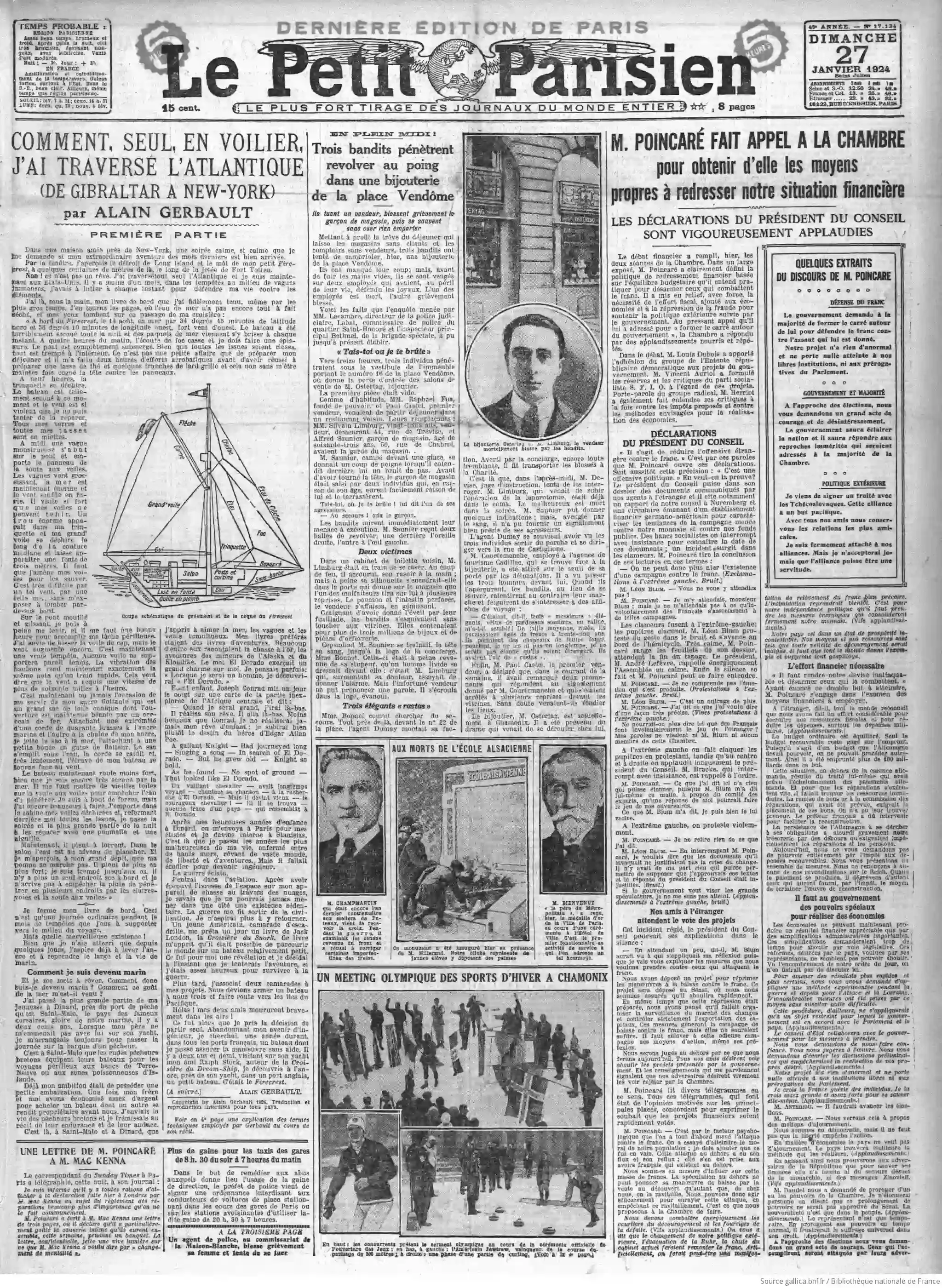 Et à la page suivante - Place Vendôme, deux bandits pénètrent chez un joaillier, blessent deux employés et s'enfuient sans rien dérober, aujourd'hui à la place de la maison Ostertag se trouve, entre autres, la maison Chaumet