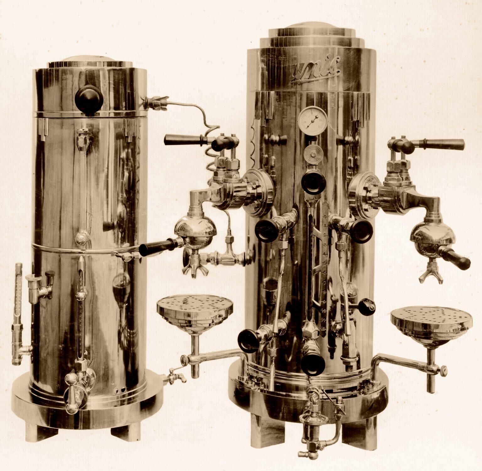 | Page deux - une nouvelle machine à café est inaugurée au restaurant Savoia passage des Princes à Paris. Cet appareil (en photo) est l'ancêtre de nos percolateurs |