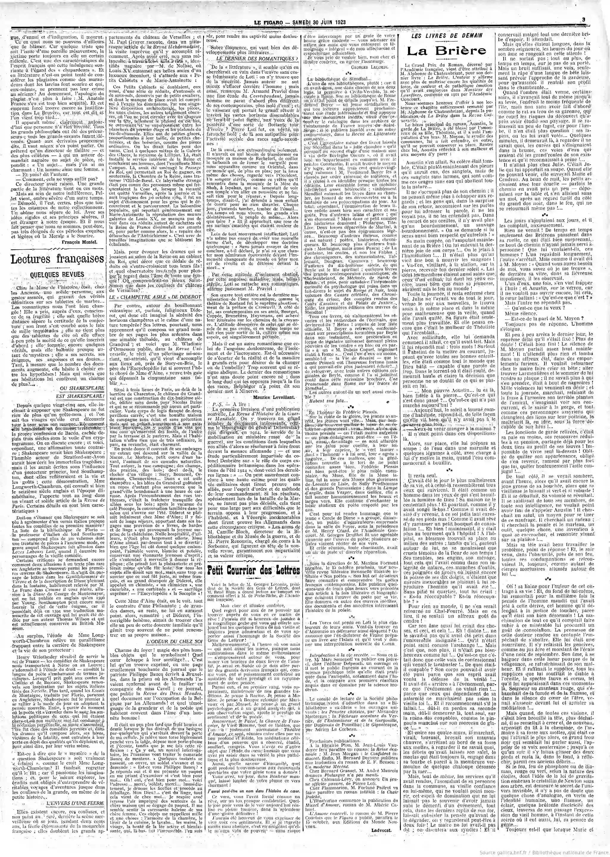 Page trois - c'est Diderot, Stendhal, et les revues et livres récents |