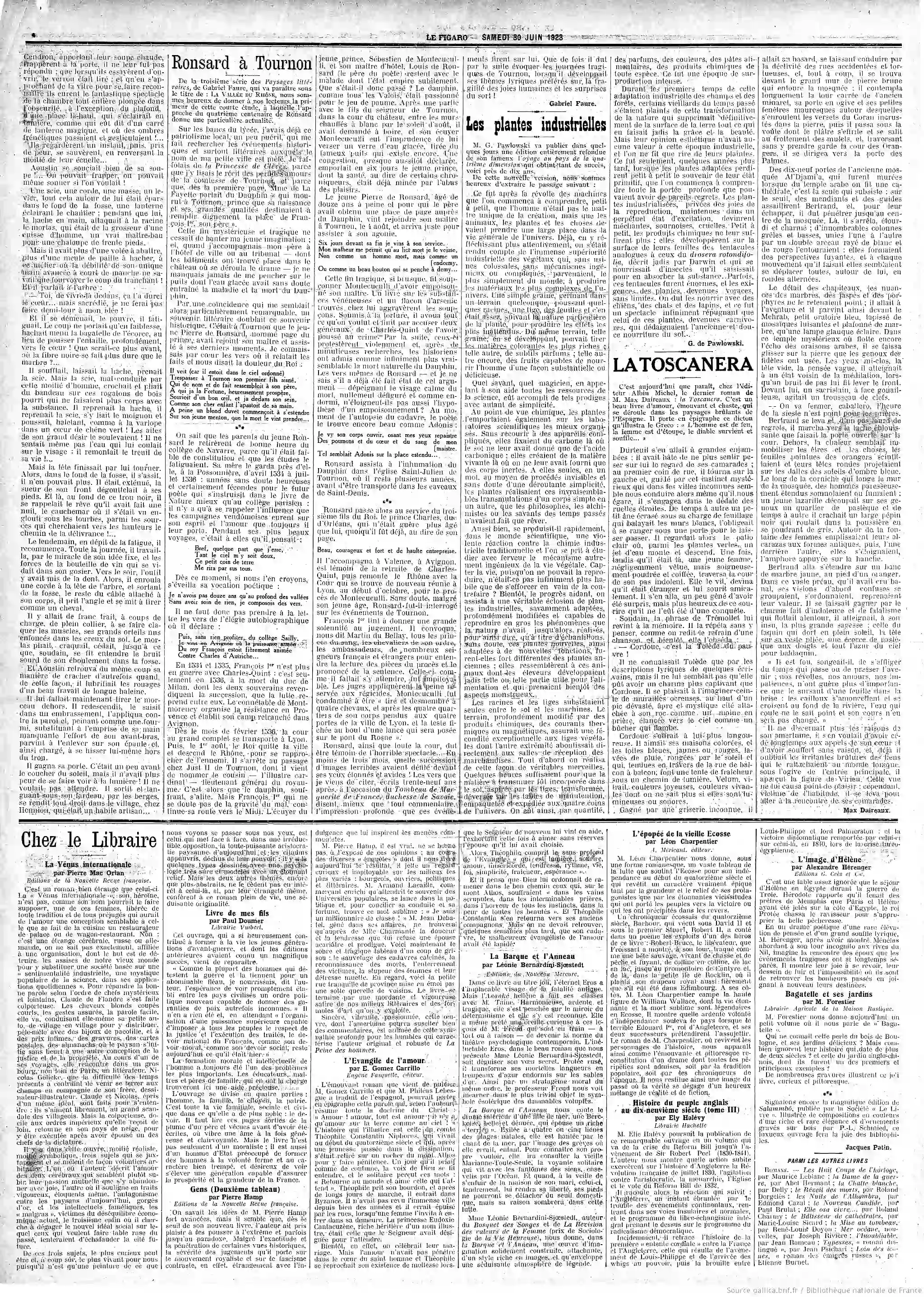 Page quatre - Ronsard à Tournon, un extrait de "voyage dans la quatrième dimension" de Gaston Pawloski, et les derniers livres |