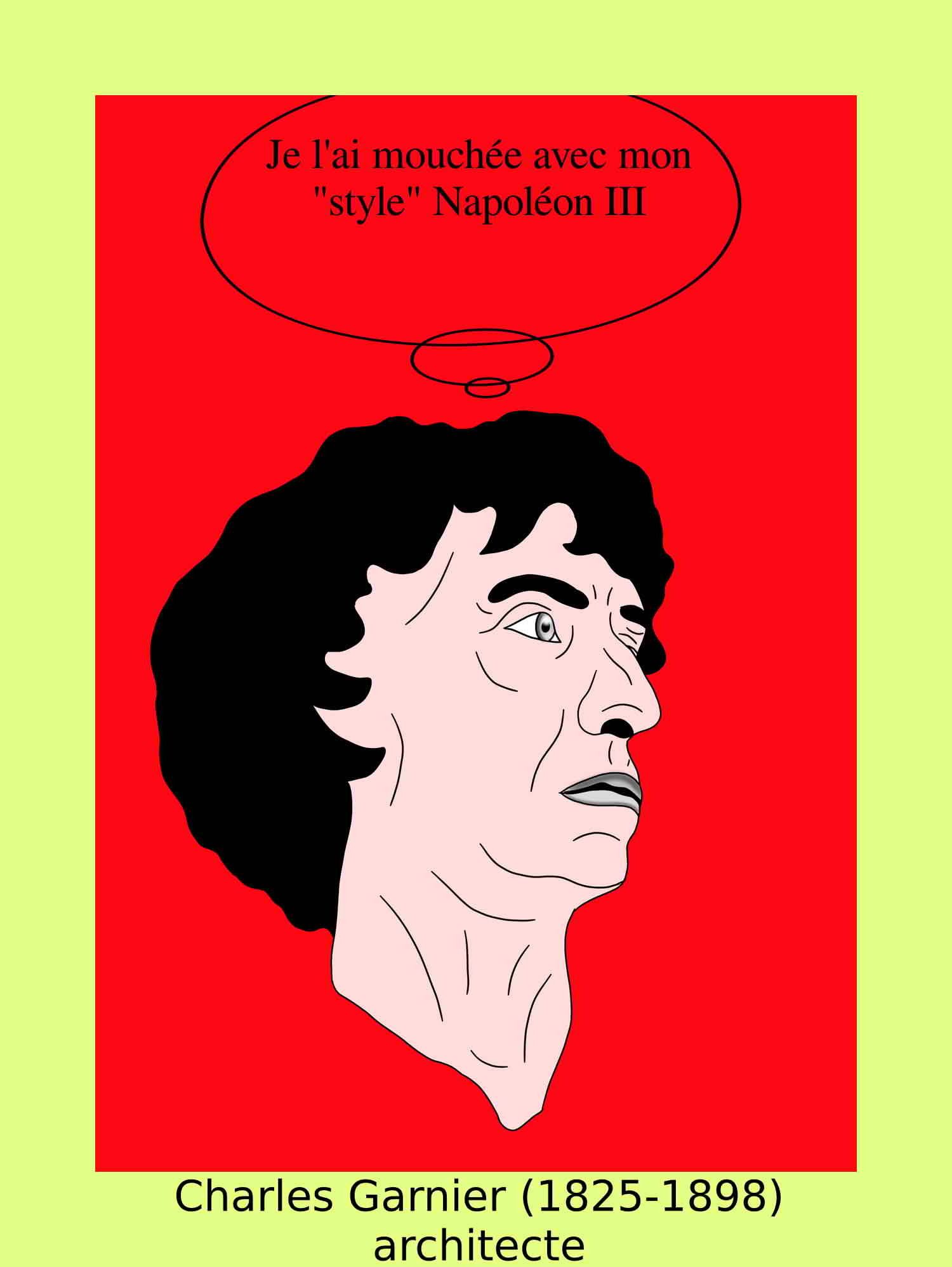 - Charles Garnier : A l'occasion du prochain centenaire de sa naissance 6 novembre 1825, une exposition de ses plans et dessins va s'ouvrir..Mme Ch. Garnier nous a laissé dans ses «Souvenirs» le récit de ces heures de travail,
