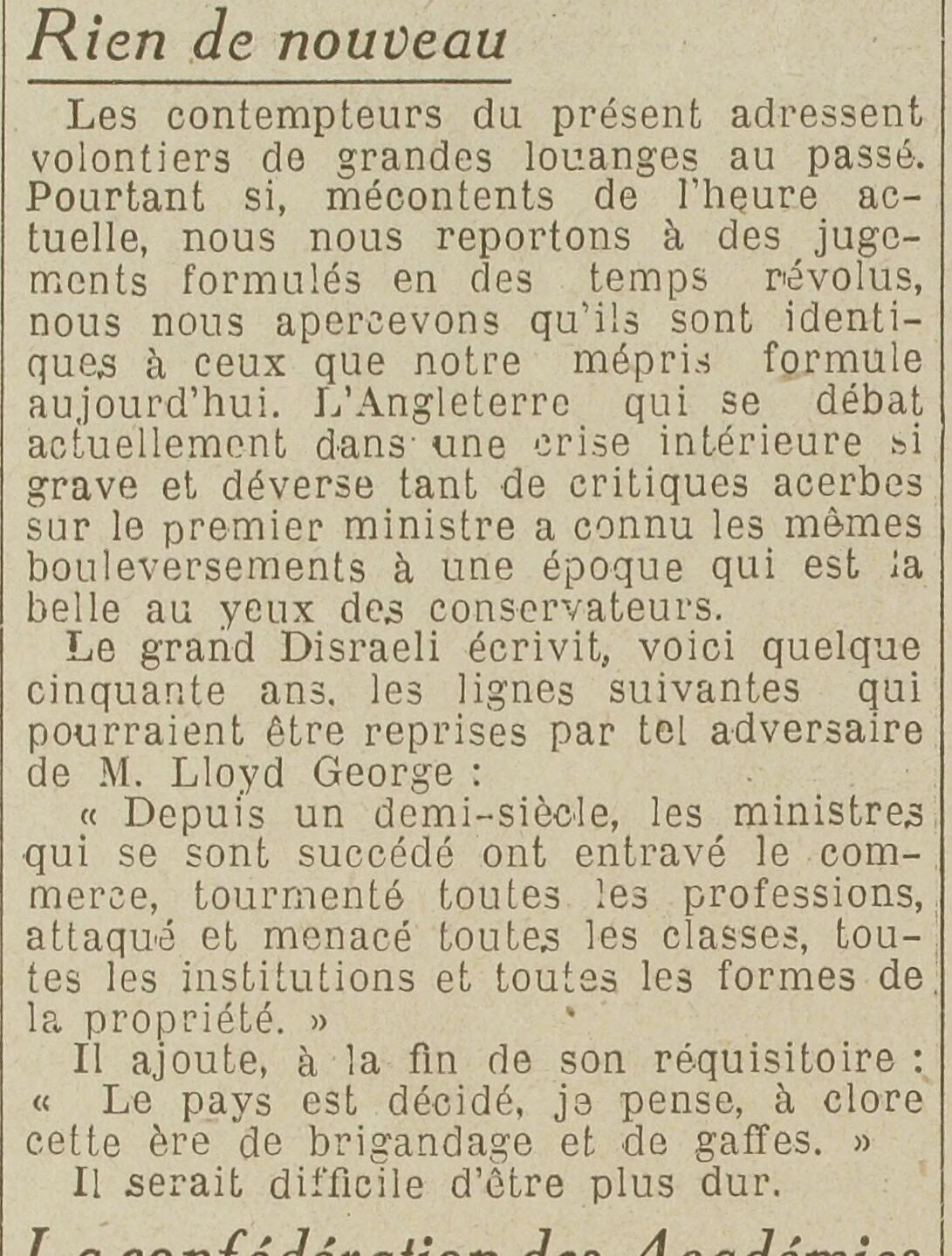 Même page - les commentaires de la presse britannique après la démission de Lloyd George |