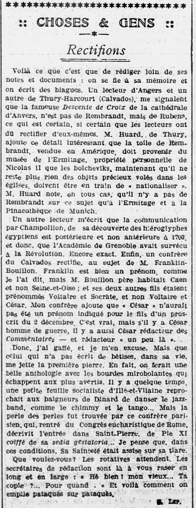 Sur la même page - rectifions : un plaidoyer pour les erreurs relevées parfois dans les articles par les lecteurs |
