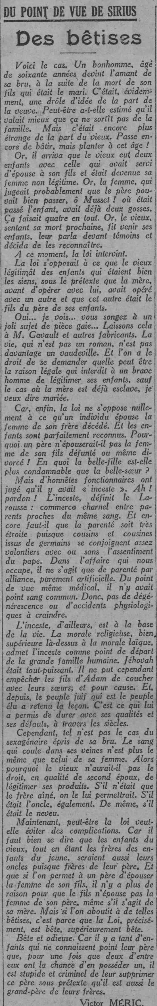 Un bonhomme, âgé de soixante années devient l'amant de sa bru - 28 mars 1926
