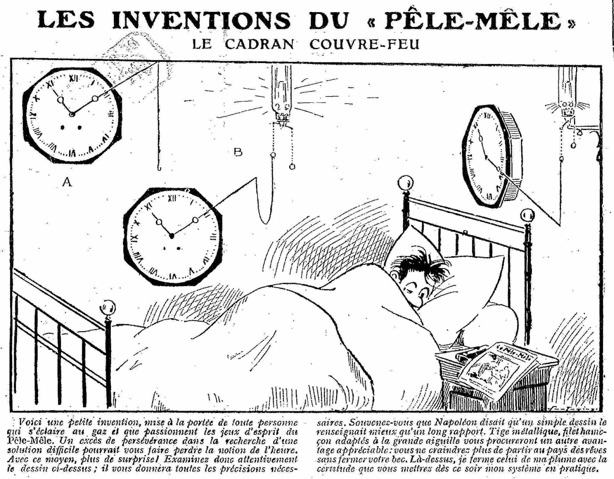 Page deux - Le cadran couvre-feu, c'est dans les inventions du Pêle-Mêle.