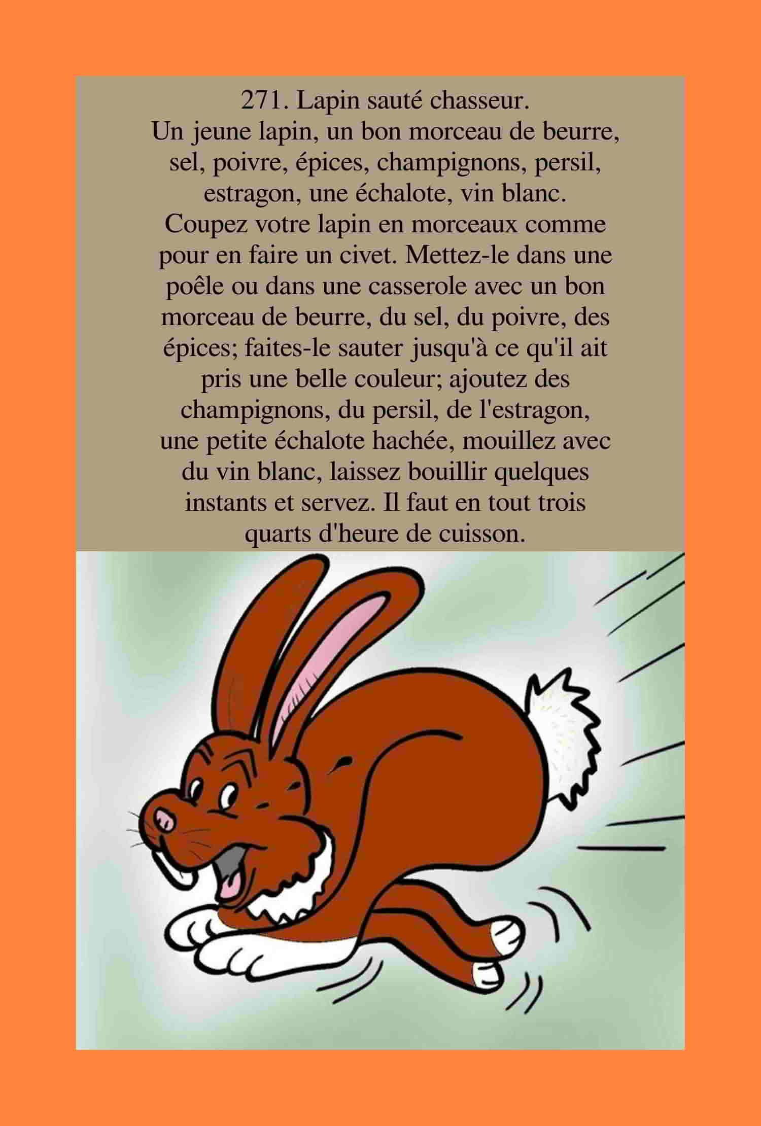 Page six - Le carnet hebdomadaire de La Bignole et du Grillon du foyer, avec cette semaine les recettes de - 269 terrine de gibier - 270 matelote de Metz - 271 lapin sauté chausseur - 272 timbale de macaroni - 273 gigot à la bretonne avec un gigot de pré-salé - 274 fondue de Belley, avec des truffes, un plat tant apprécié de Brillat-Savarin. Bon courage pour sa réussite