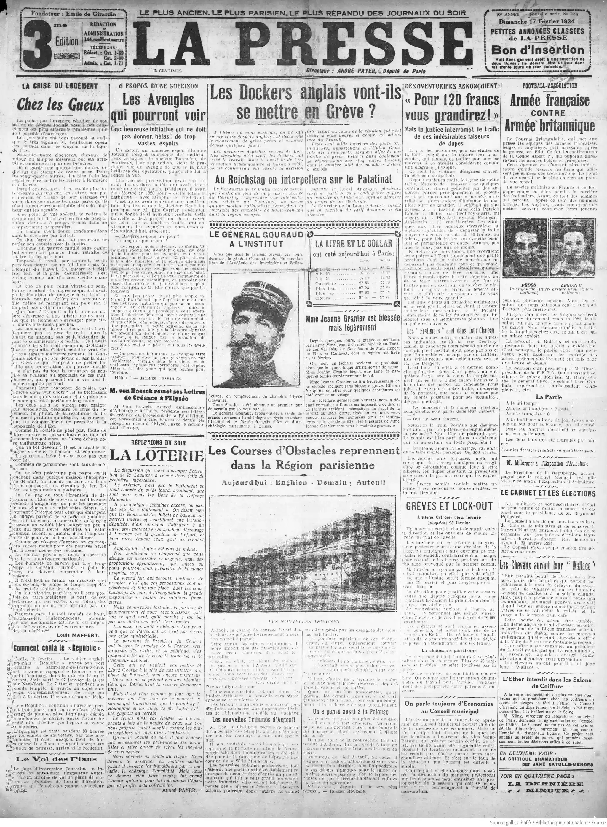 | La Presse 17 février 1924 |
