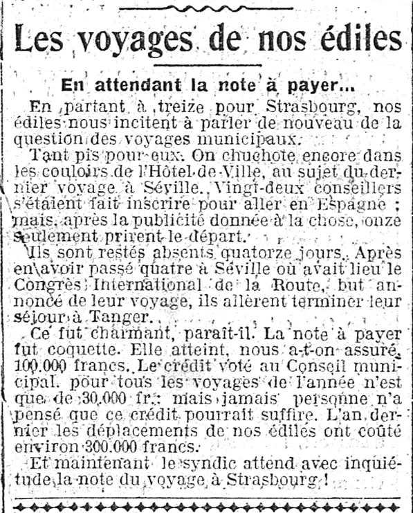 Page une - à l'Hôtel de ville , on chuchote encore dans les couloirs au sujet du dernier voyage à Séville |