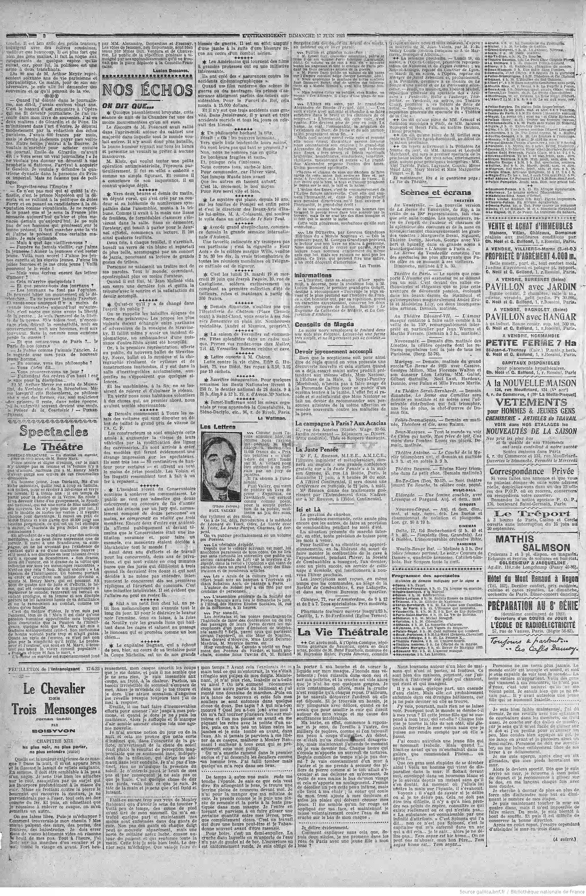 Page une -BlanchyBlanchy est champion de France de tennis, et Mme Millerand visite " la maison maternelle " est champion de France de tennis, et Mme Millerand visite " la maison maternelle "