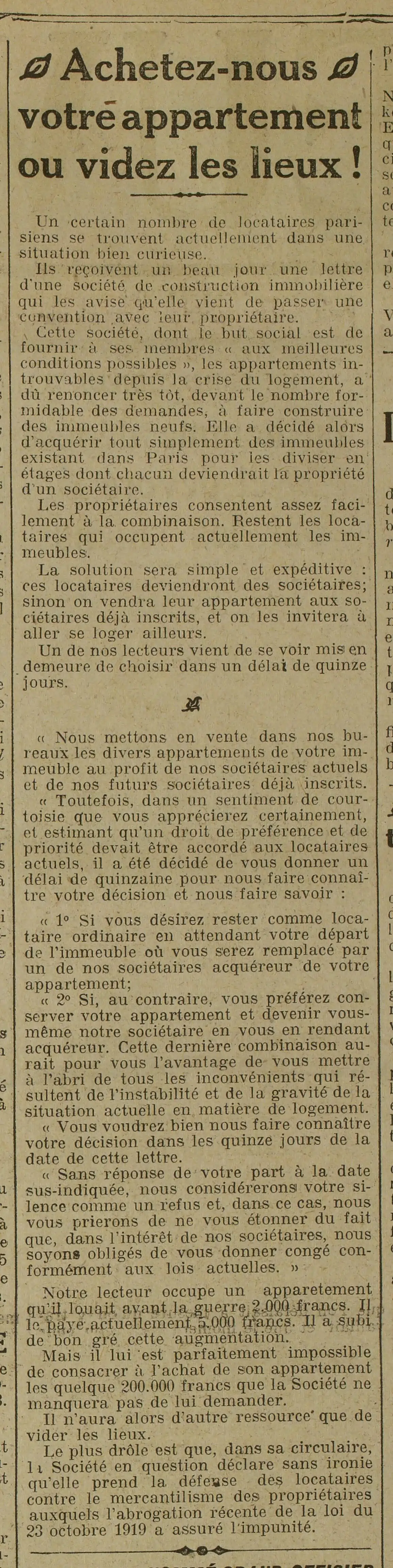 Egalement en page deux - achetez votre appartement ou déguerpissez |