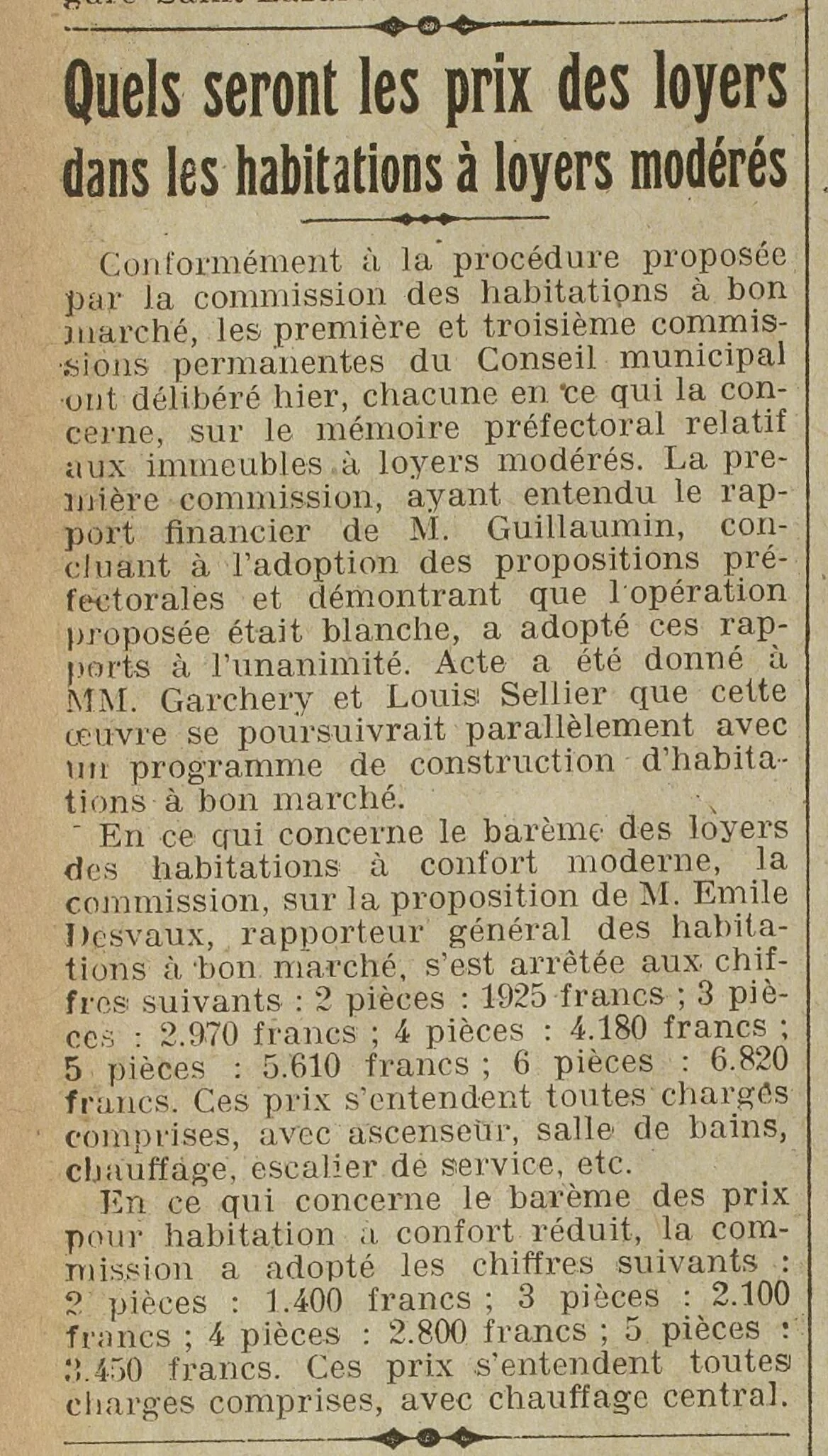 Et toujours page deux - les prix des loyers des Habitations à Loyer Modéré : quels seront-ils ? |