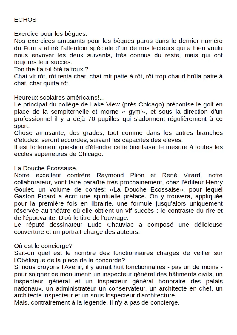 Également page six - Un tennis de salon à la campagne pour l’hiver, où il faut, à défaut de force, beaucoup d’adresse. Et grâce à l’aide de savants, Plateau et Terquem, plus de secret pour réaliser des... bulles de savon parfaites. Découvrez la réglementation officielle de ce nouveau sport d’équipe, mais attention, Mamie et Papy ne vont pas forcément être d'accord, pour fournir les paquets ou tapis de la maison de campagne comme terrain de jeu le dimanche après-midi Olry Terquem |