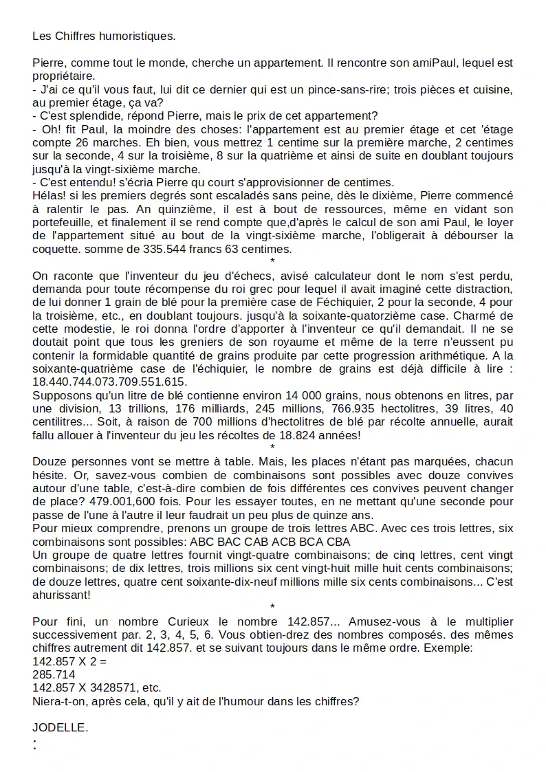 Page trois - Les chiffres humoristiques ou les mathématiques amusantes |