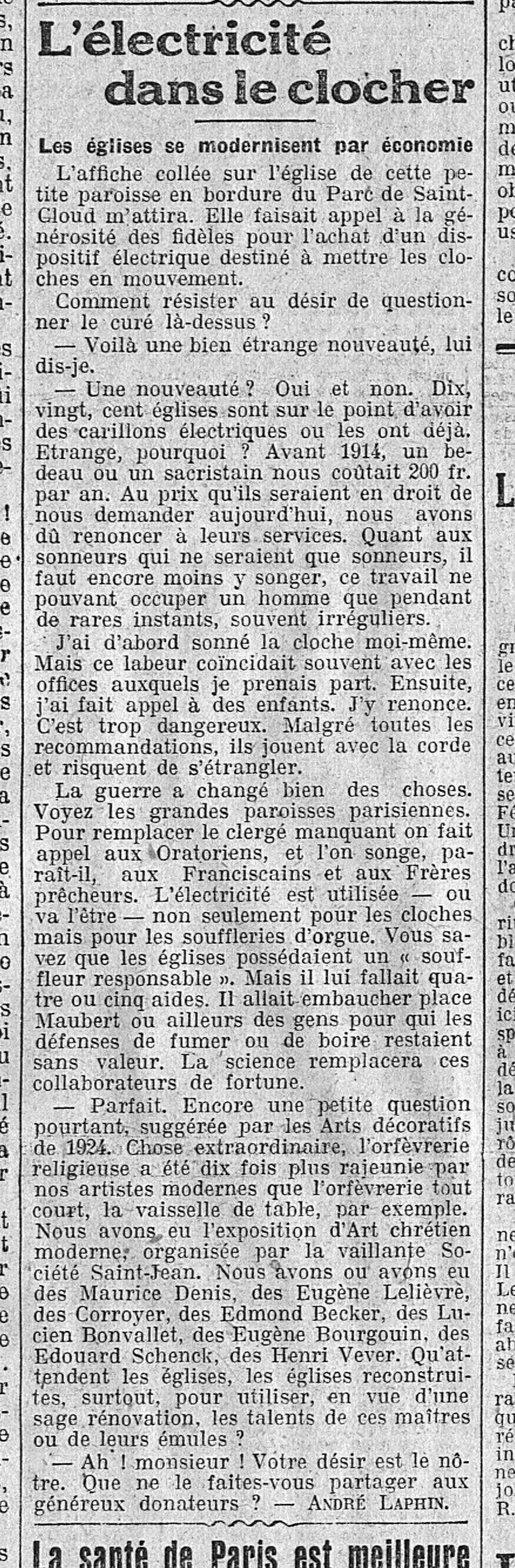 L'électricité dans le clocher, les églises se modernisent par économie