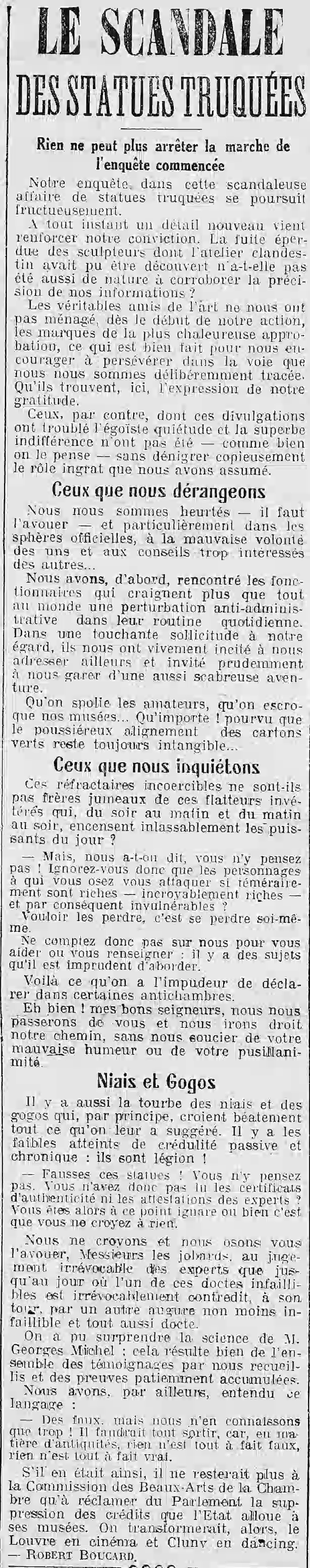 Page une - les statues truquées : rien ne peut plus arrêter la marche de l'enquête |