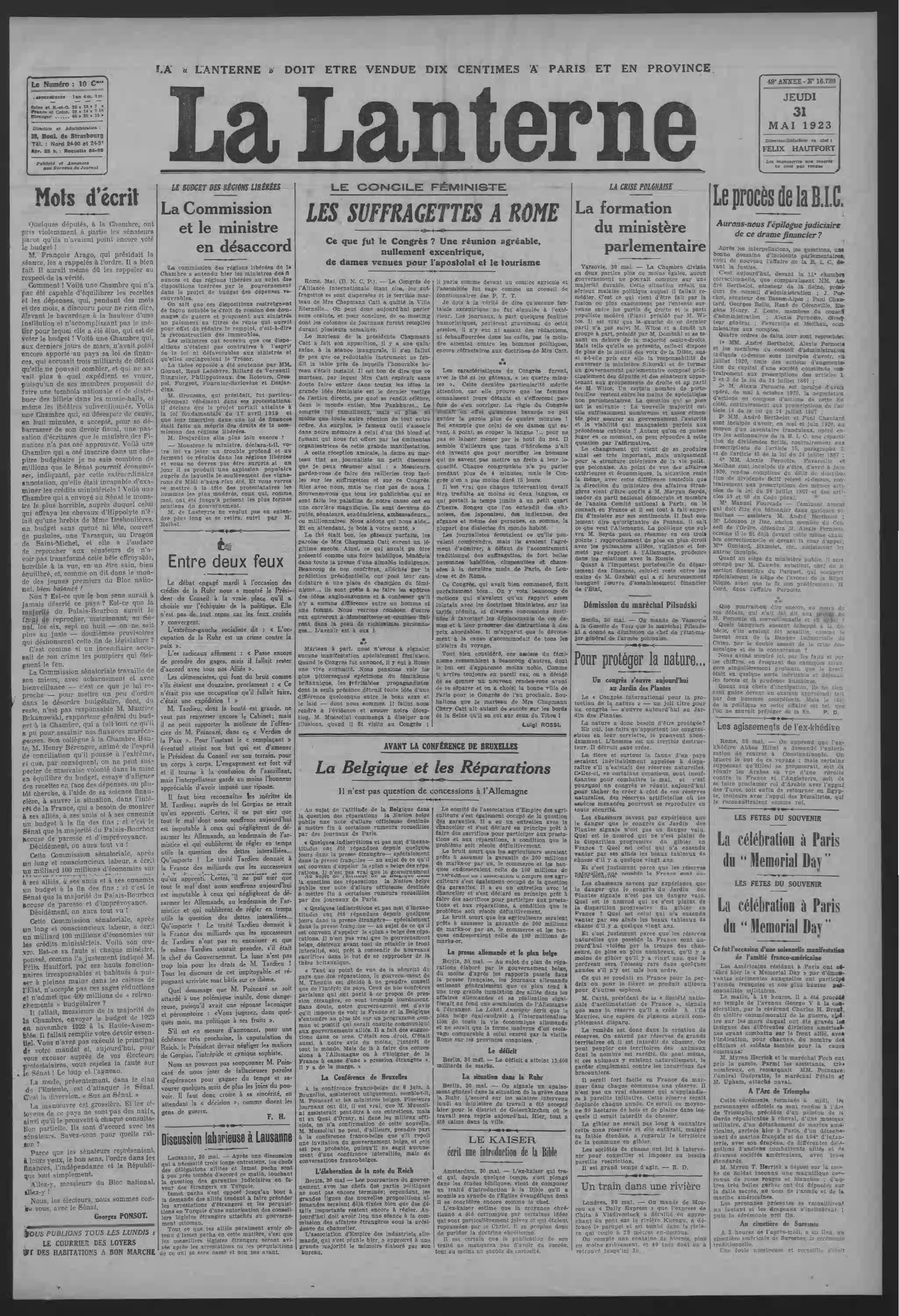 Page une - les pourparlers autour des réparations et les intrigues du Reich à Londres |