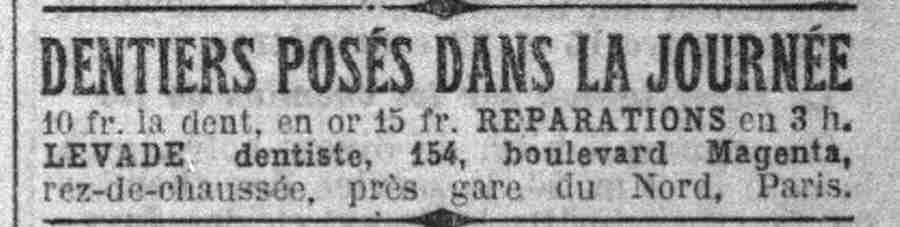 10 fr. la dent, en or 15 fr. REPARATIONS en 3 h.