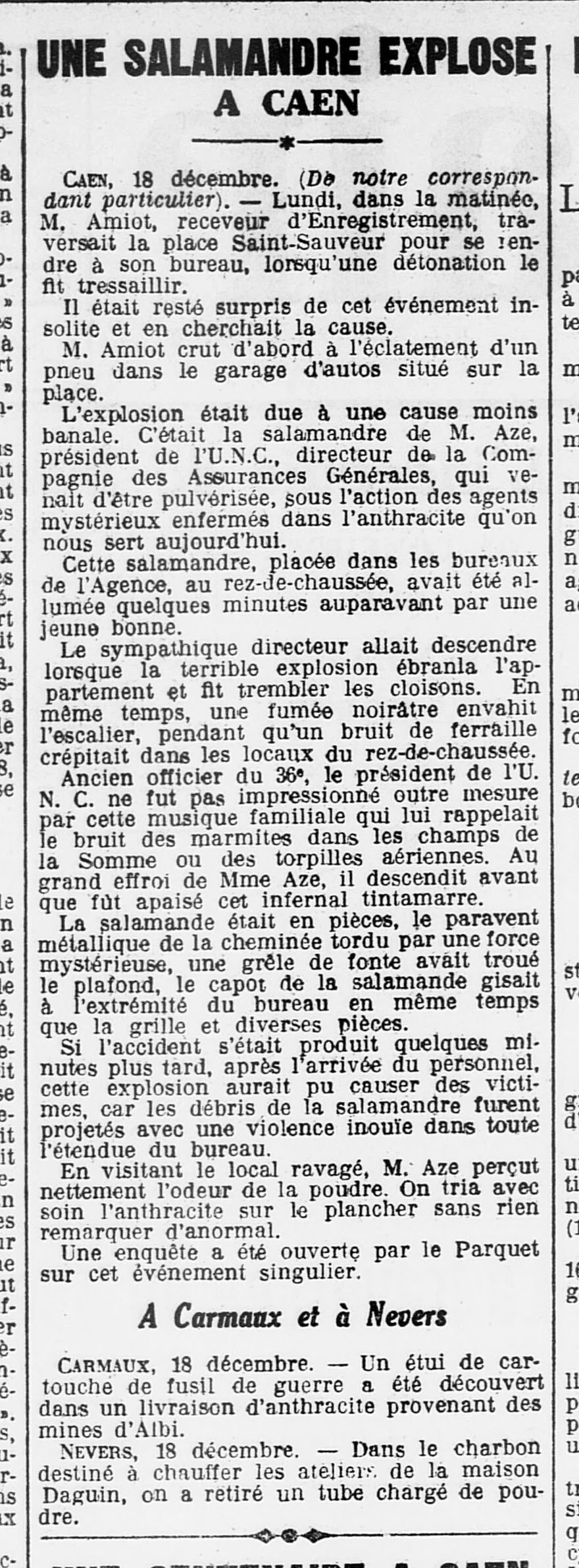 Et bien-sûr encore un poêle qui explose , cette fois une Salamandre à Caen |