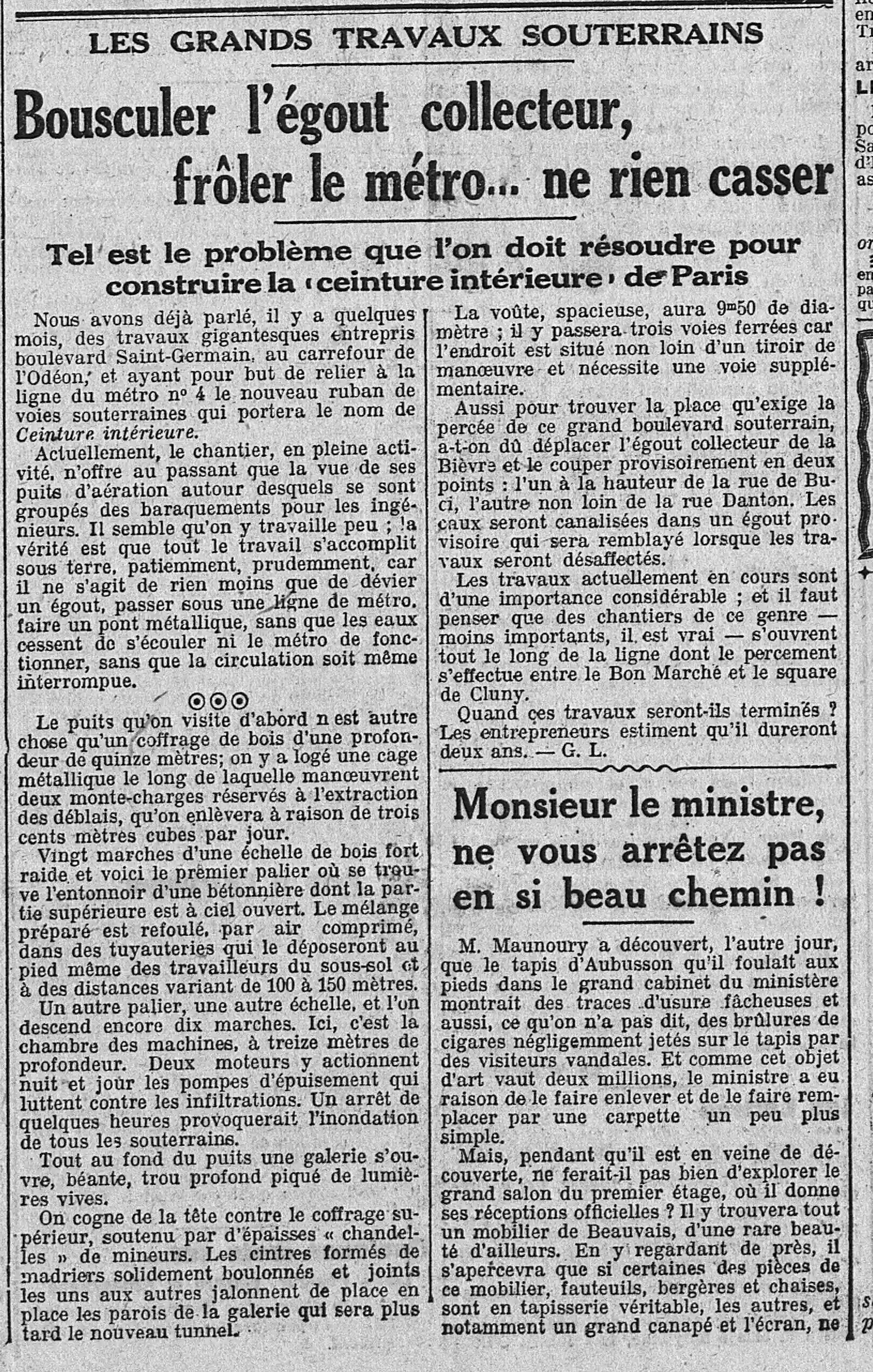 sur la même page - les grands travaux souterrains bousculer le collecteur d'égoût, frôler le métro... ne rien casser |